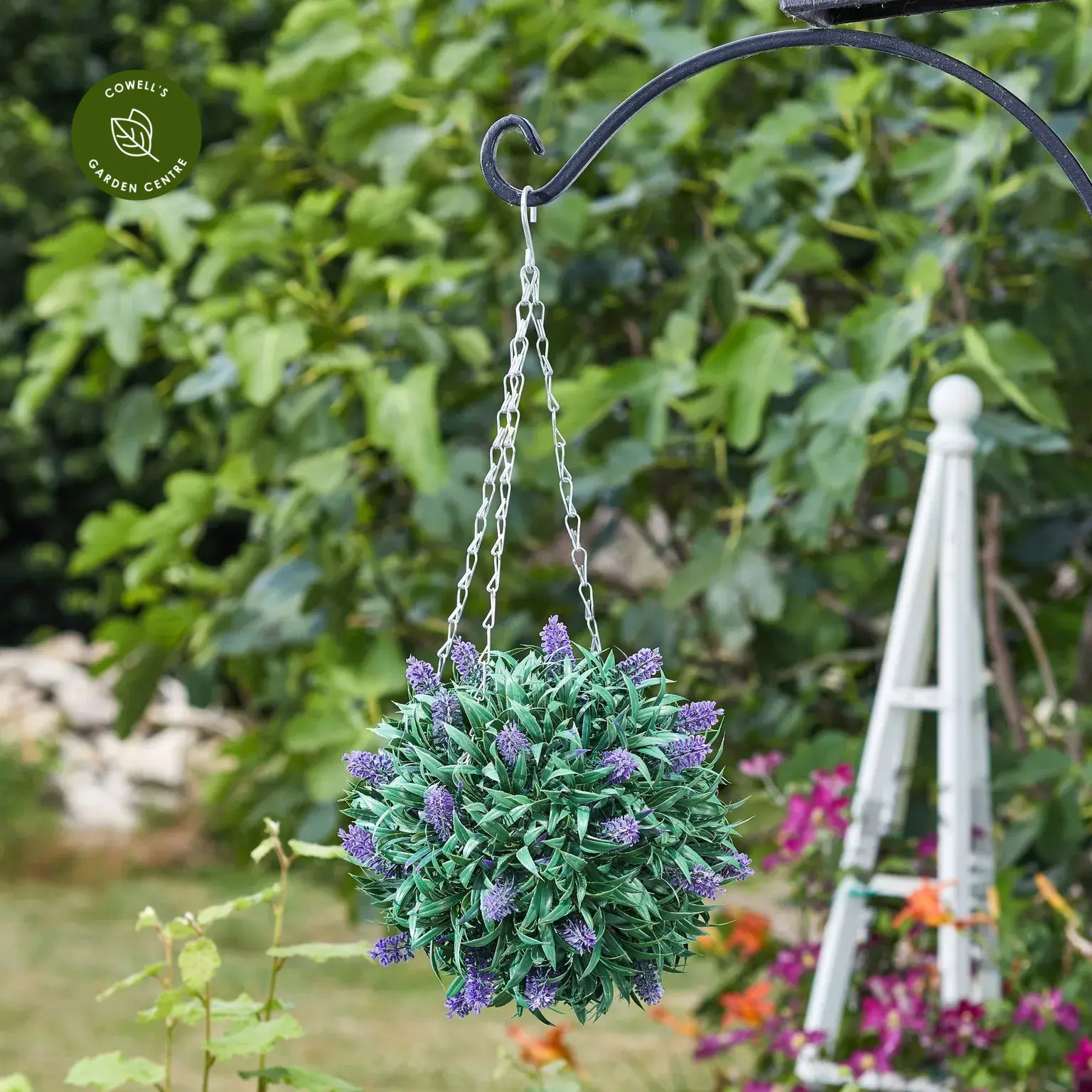 Add instant structure and colour with this realistic artificial lavender topiary ball. Designed for zero maintenance, it’s perfect for placing in pots or hanging to create year-round interest indoors or outside. Durable and UV resistant, it keeps its vibrant look whatever the season.