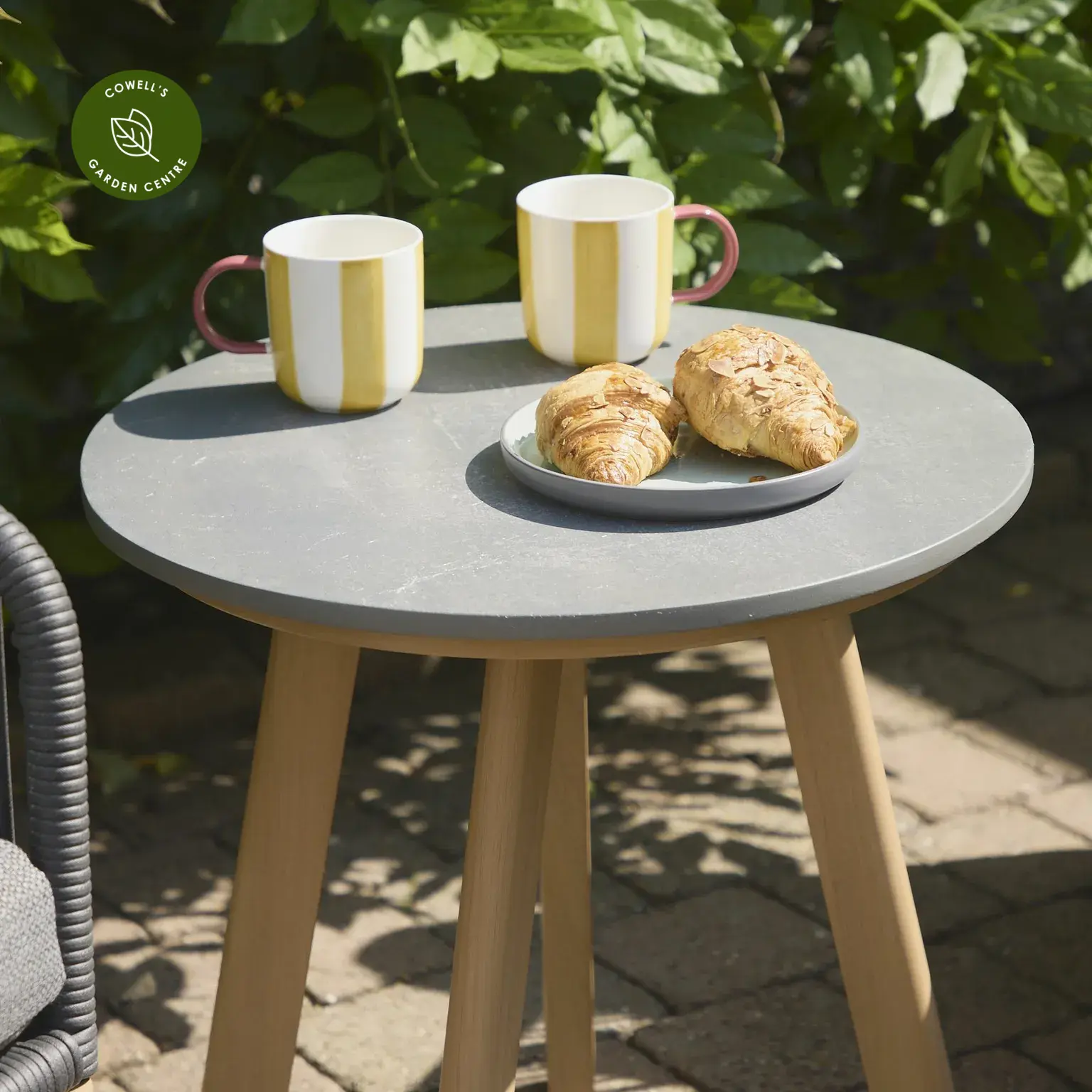 The Peru range is a fusion of materials for a high quality finish, with an aluminium frame in a wood effect finish, and all-weather rope detailing. Table tops in the Peru range are a stone effect finish, for a timeless design.