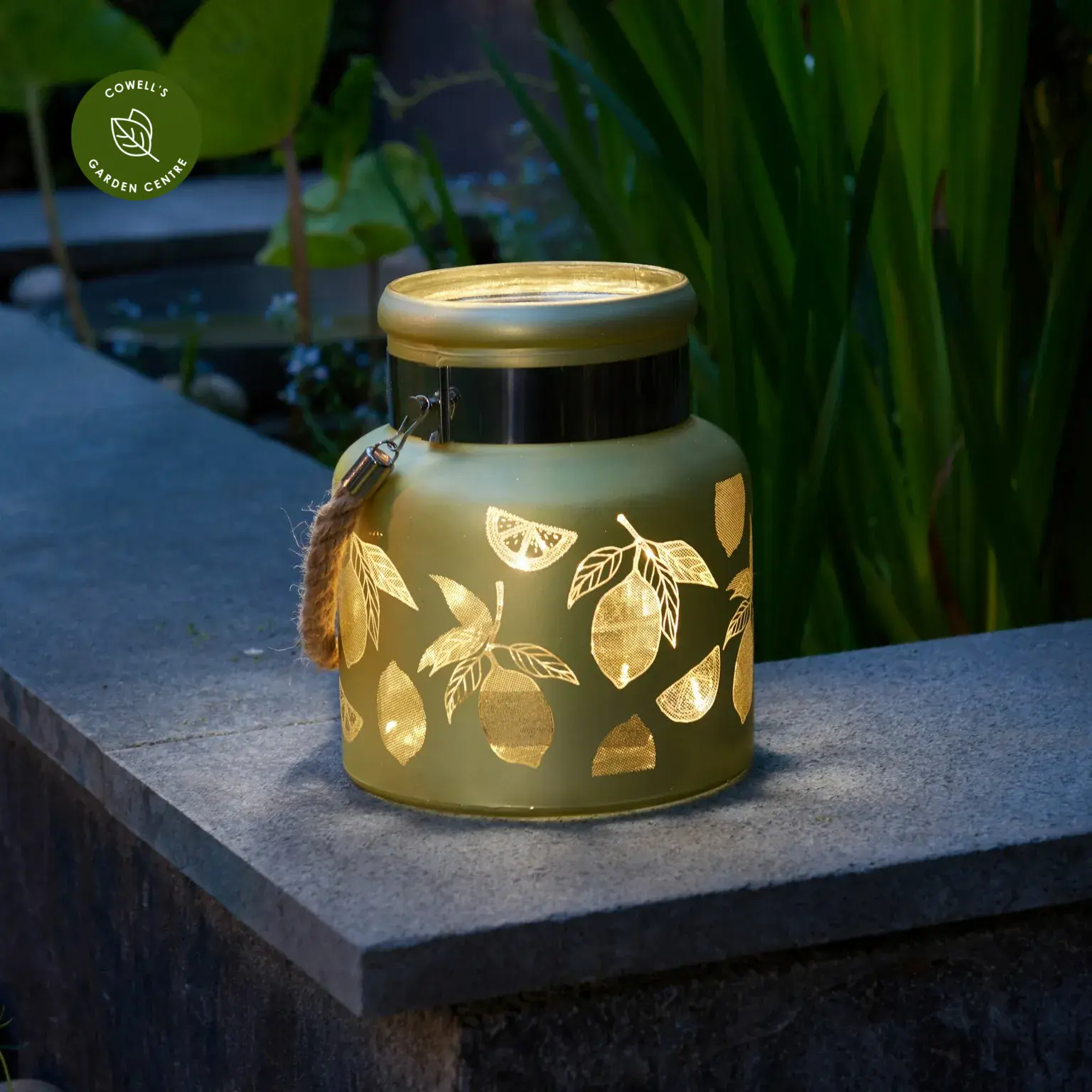 Add a soft, decorative glow to your home or garden with this charming glass lantern. Featuring a hand-painted lemon design, it casts beautiful patterned light when used with candles or string lights. Perfect for tables, patios, balconies or indoor displays, it works equally well as a standalone piece or grouped for greater impact.