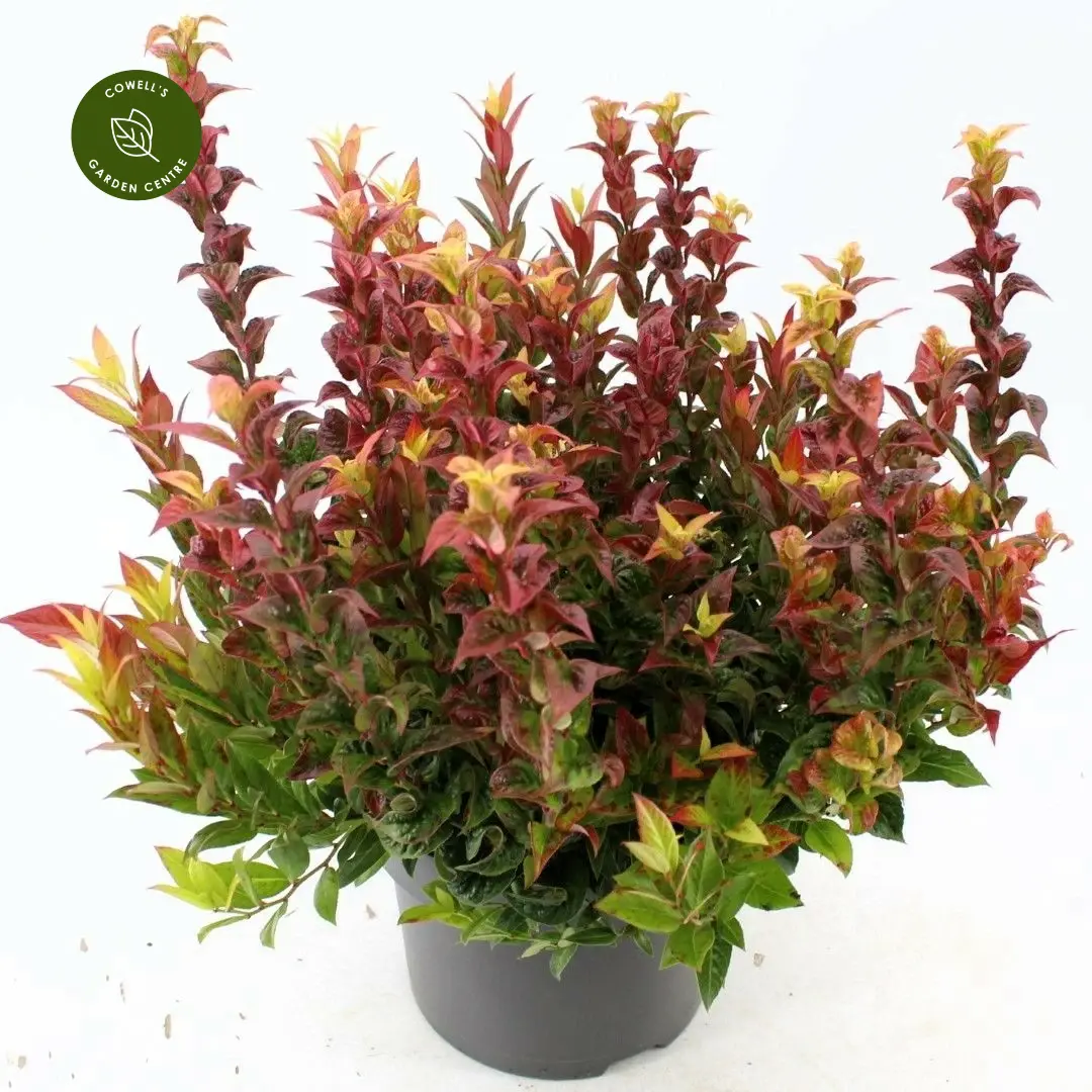 Leucothoe axillaris 'Curly Crazy' is a distinctive evergreen shrub, grown for its unusual twisted foliage and vivid seasonal colour. Its glossy, curled leaves emerge deep red, mature to green through the summer, and then develop striking red and bronze tones in autumn and winter. This constantly changing display provides year-round visual interest, making it a standout feature in any border or container.