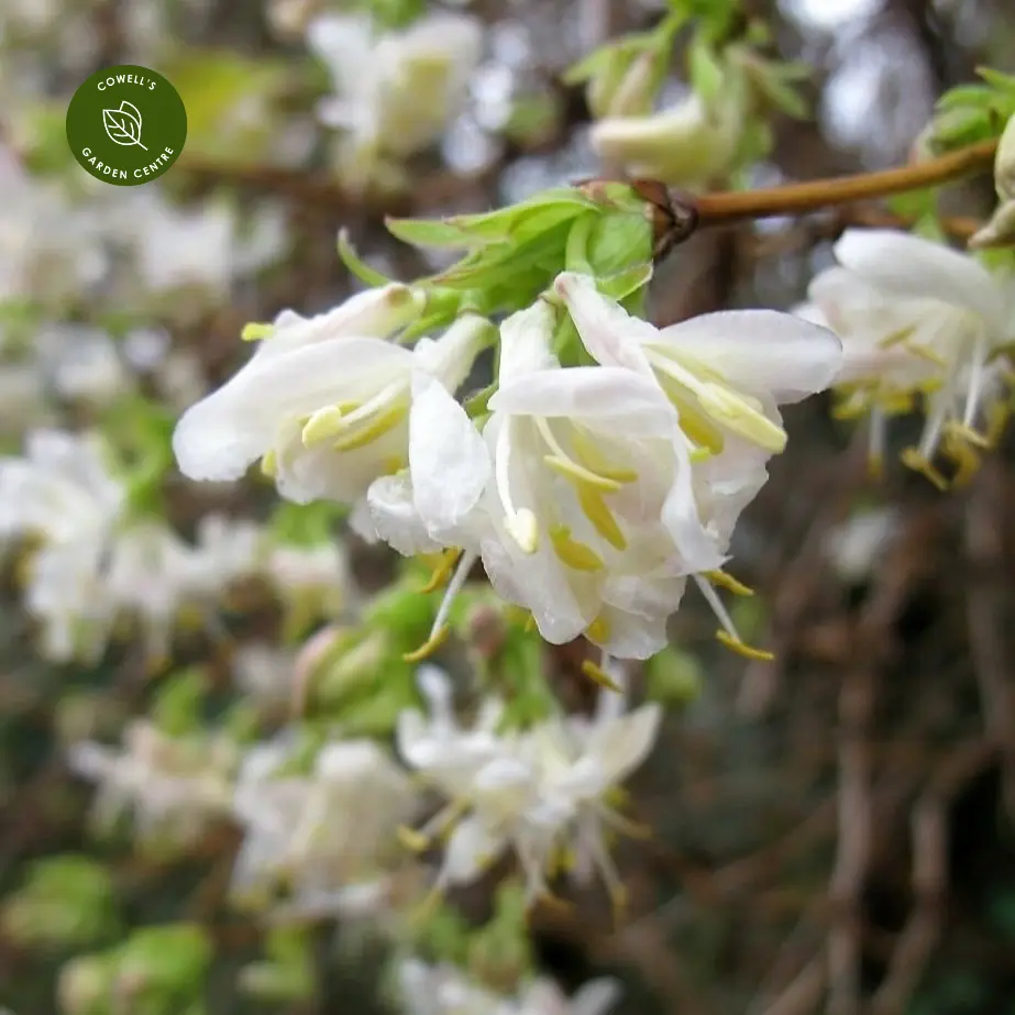 Lonicera 'Winter Beauty' is one of the finest winter flowering honeysuckles with creamy white scented flowers on bare stems during December to March, offering valuable nectar to early pollinators. Its semi-evergreen foliage appears after flowering, and the arching stems give a relaxed, informal habit. Plant under a window or near a doorway or path, where its powerful scent can be appreciated. Honeysuckles attract bees and butterflies and also provide a nesting habitat for birds.