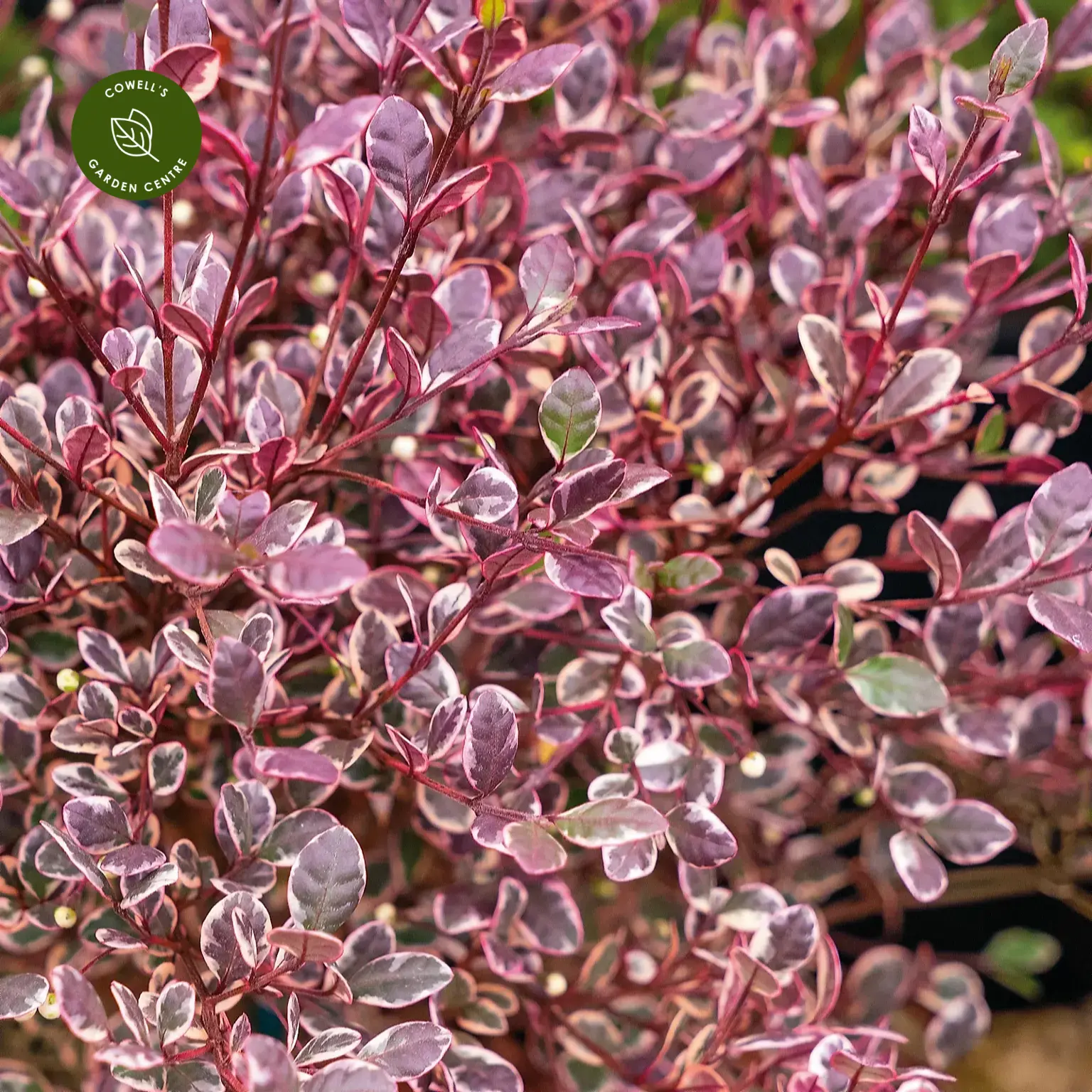 In summer, delicate white flowers appear amongst the foliage, lightly scented and followed by decorative dark red berries. This versatile shrub is ideal for borders, mixed planting or containers and grows well in full sun or partial shade.