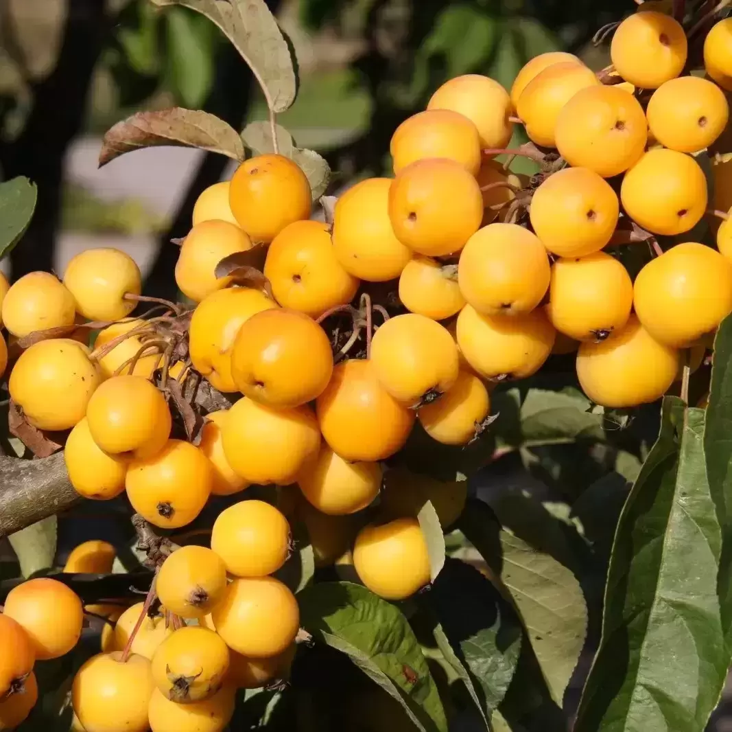 Malus 'Golden Hornet' is one of the most popular ornamental crab apples, prized for its long-lasting display of colourful fruit. In spring, it bears a profusion of white blossoms that are highly attractive to pollinators. These are followed in autumn by masses of small, golden-yellow crab apples that persist well into winter, providing seasonal colour and a valuable food source for birds.