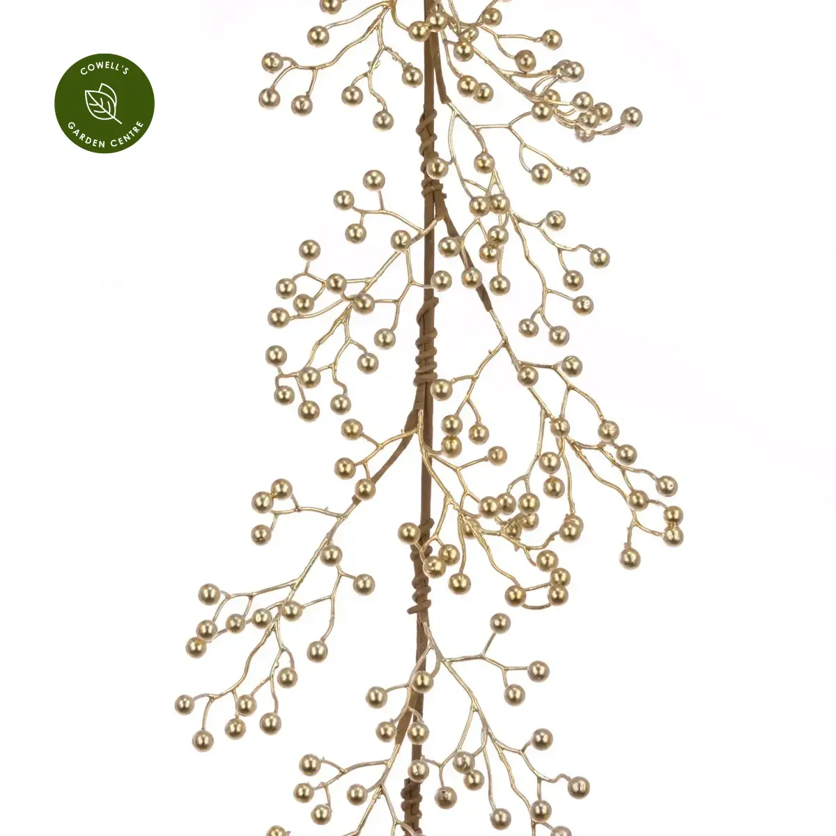 Metallic berries woven round a central bare stem to create a winter themed garland, to use in a table centrepiece or to elevate your Christmas displays.