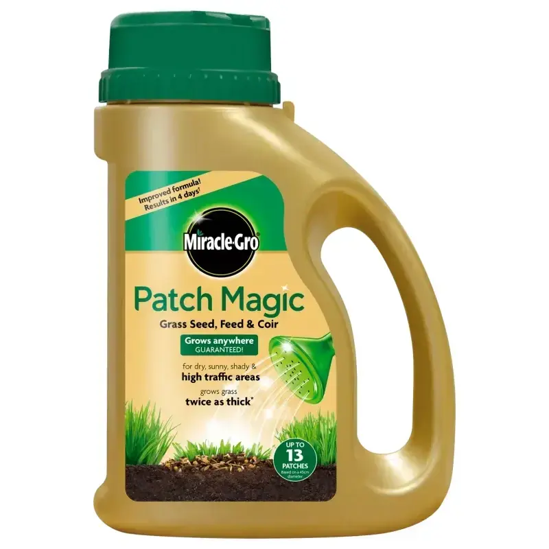 Miracle-Gro® Patch Magic® Grass Seed, Feed & Coir is an easy-to-use, one step solution to repair patches on lawn. Guaranteed to grow anywhere, even on slopes as it contains a binder which helps to keep the seed from washing away.