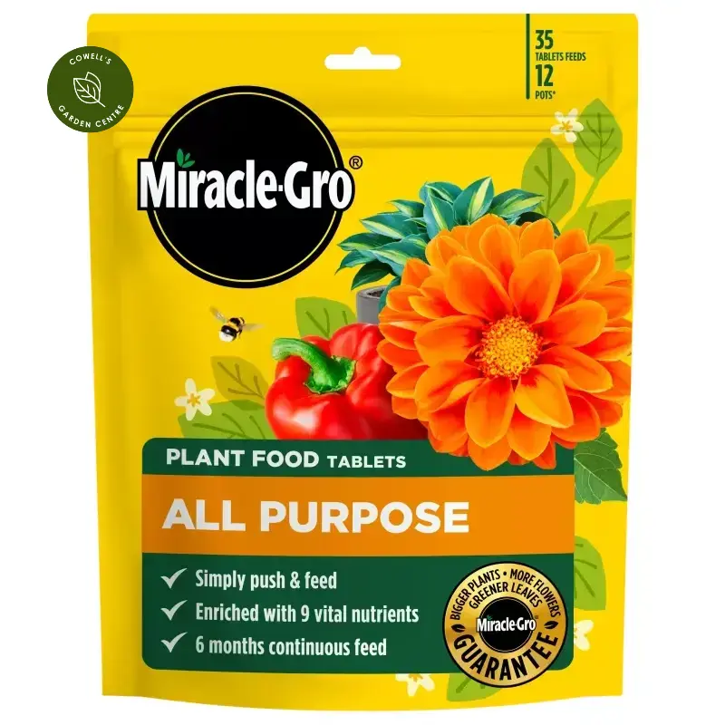 Miracle-Gro® Premium All Purpose Continuous Release Plant Food Tablets are a ‘smart’ feed. They have a special fast acting and long lasting formula. Each tablet has a coating that controls and regulates the release of nutrients, only releasing them when conditions are right for plant growth and when the plant needs them. This release ensures steady, even growth – which is far better for producing strong, sturdy, healthy plants that perform much better in the garden.