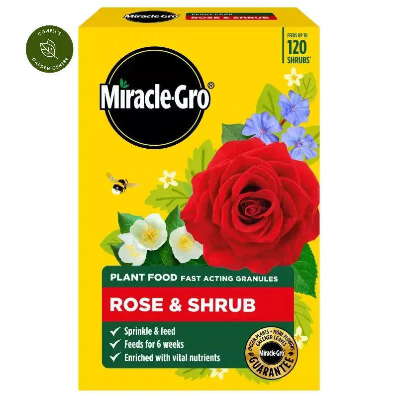 Miracle-Gro Rose & Shrub Fast Acting Granules Plant Food is rich in essential nutrients with extra magnesium for healthy growth. Plants will be fed for up to 3 months, producing top quality blooms and greener leaves.
