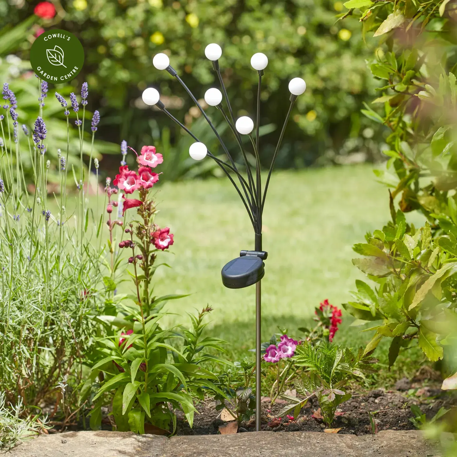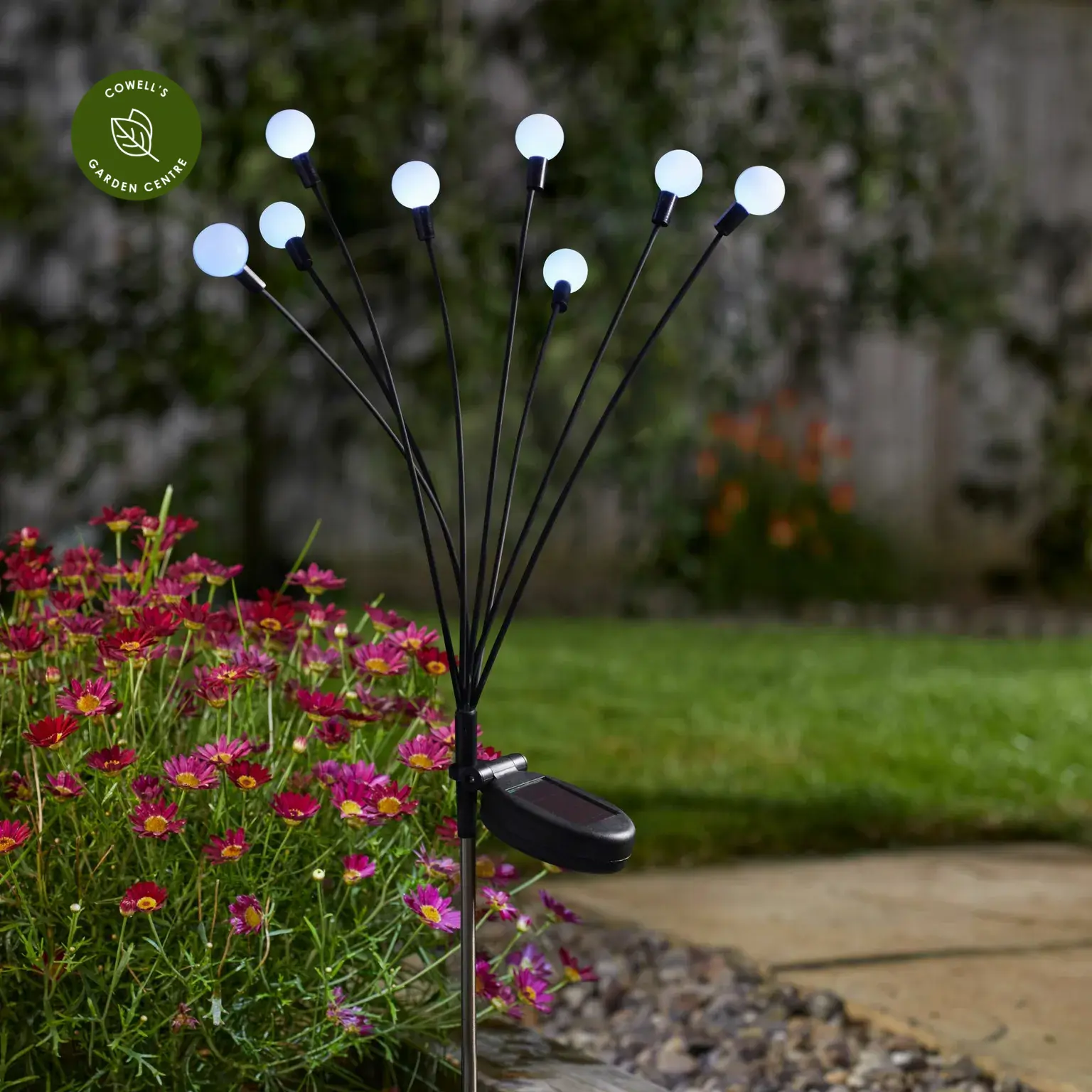 This elegant garden stake light features eight globe-tipped stems that sway gently in the breeze by day and create a beautiful glowing display by night. The soft, flexible branches move naturally, adding movement and atmosphere to borders, pots or pathways.