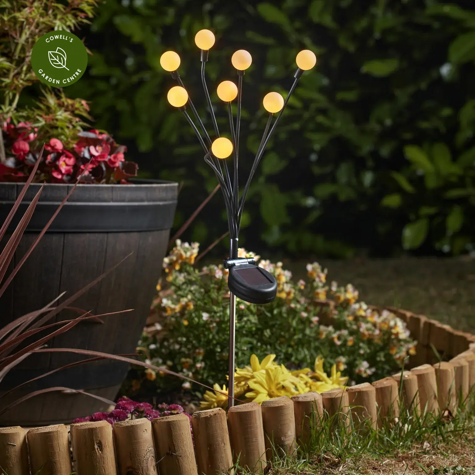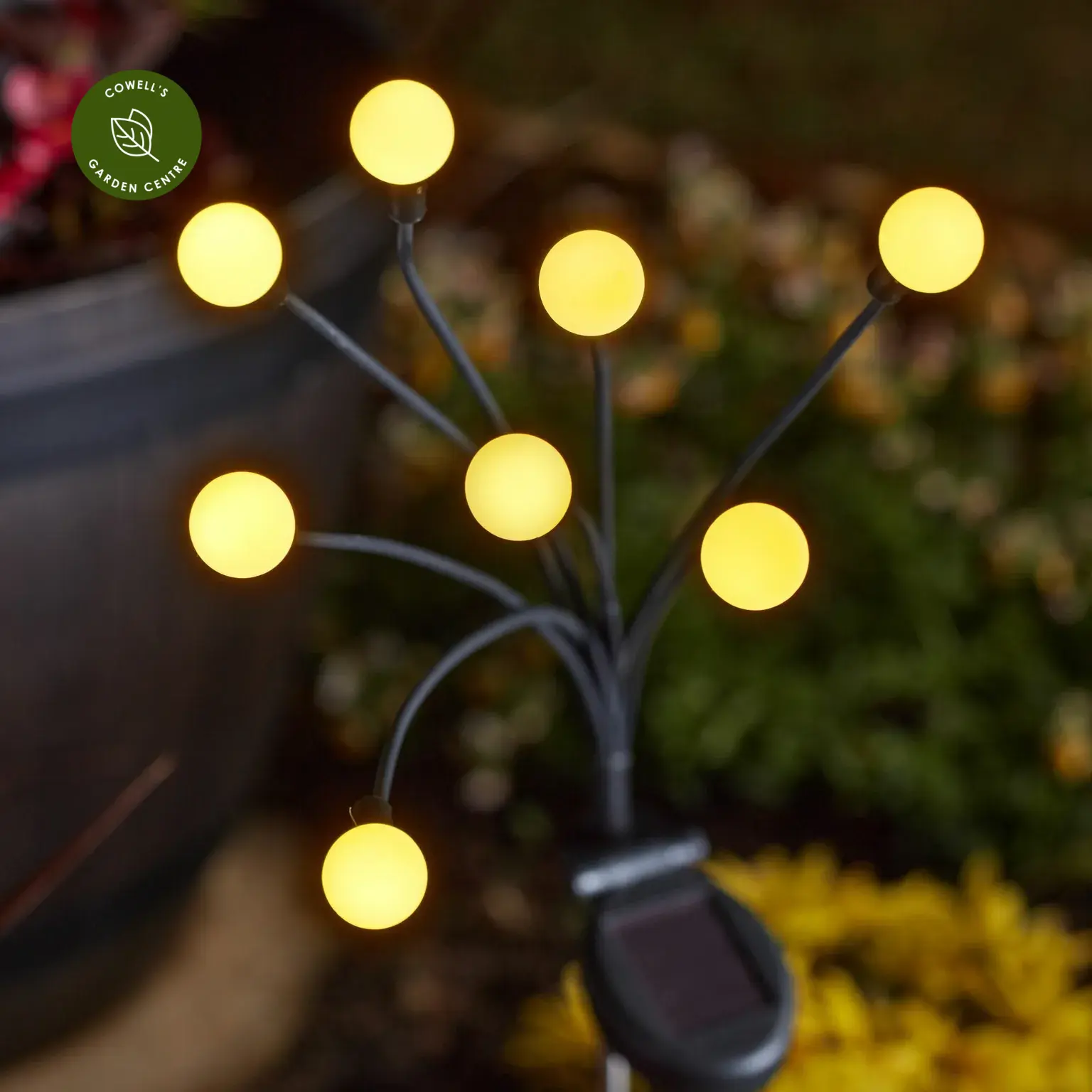 This elegant garden stake light features eight globe-tipped stems that sway gently in the breeze by day and create a beautiful glowing display by night. The soft, flexible branches move naturally, adding movement and atmosphere to borders, pots or pathways.