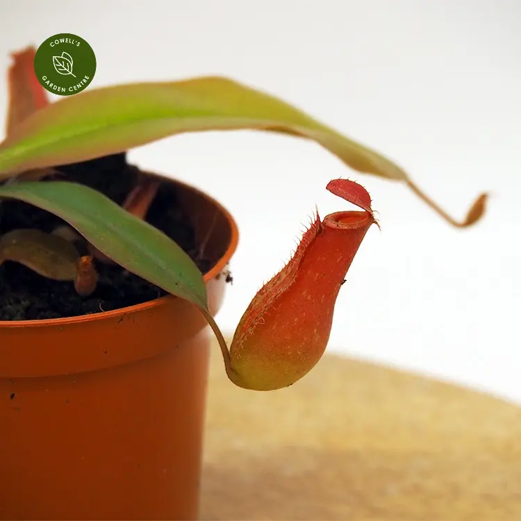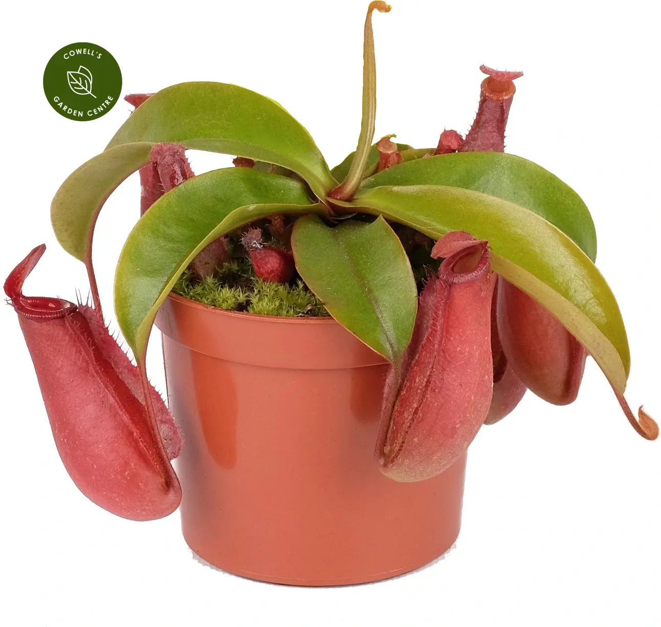 Nepenthes ‘Bloody Mary’ is a striking carnivorous houseplant with deep red pitchers set against rich green foliage. The vivid colouring and unusual hanging traps give it a dramatic, exotic look, while its compact growth habit makes it more manageable than many other Nepenthes varieties.