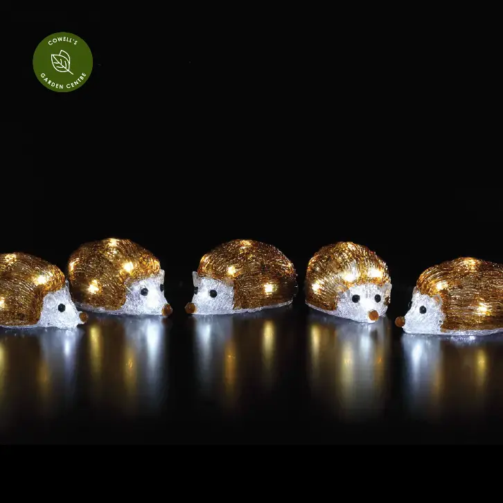 A set of 5 cute acrylic hedgehogs to decorate your home or garden. Each hedgehog holds 8 energy-efficient LED light bulbs with Easy Timer technology.