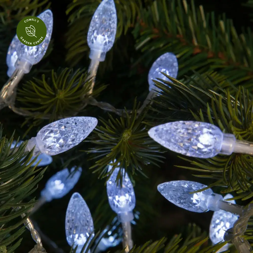 A touch of traditional with a modern twist, these 100 faceted cone lights are great for banisters or added to a garland.