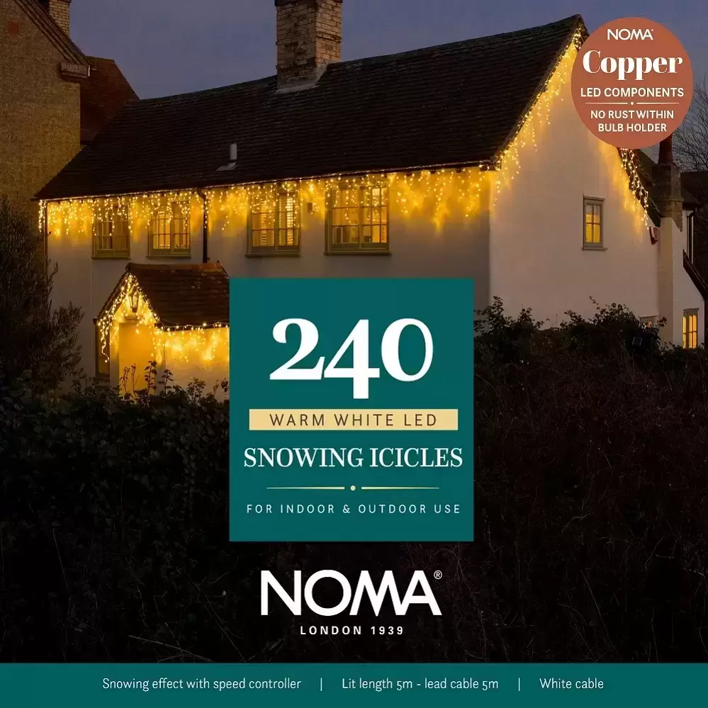 We want to know your opinion! Write a review about the product “Noma Snowing Warm White Icicle String Lights - 240” and get a chance to win a National Gardening Gift Voucher of £25!