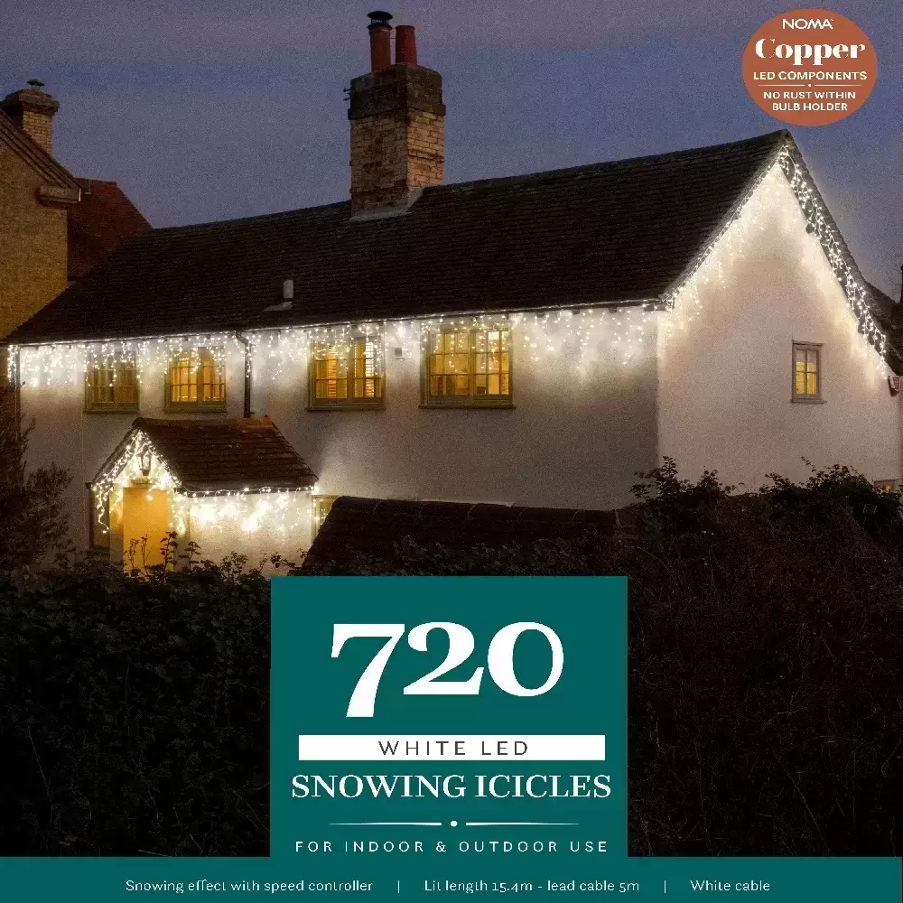 Traditional icicle lights with natural snowing effect and speed setting - includes NOMA EasyTimer and gutter hooks for a straight-forward installation. Includes gutter hooks.