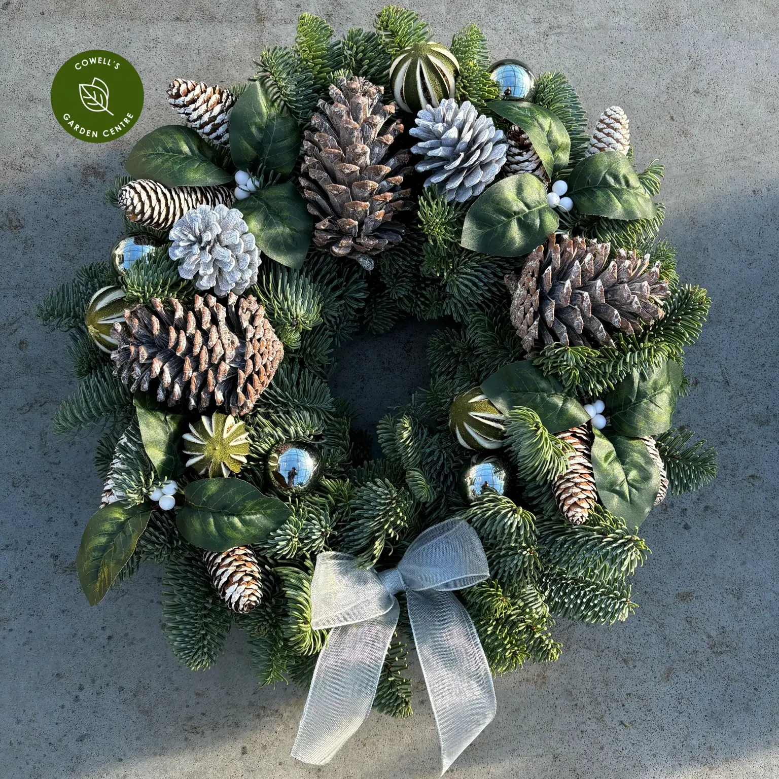 This wreath is made from the finest Noble Fir foliage sourced from sustainably managed British forests.