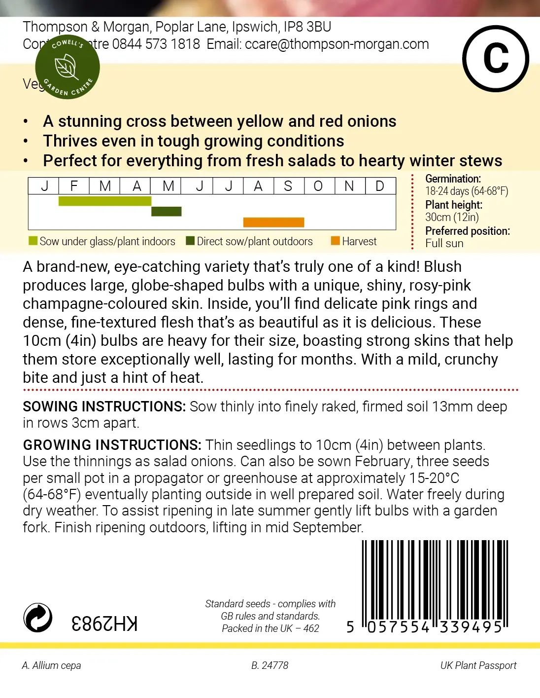 Whether sliced into salads or simmered in stews, Onion ‘Blush’ F1 brings both flavour and flair to a wide range of dishes. Ultimate height: 30cm (12in). Ultimate spread: 15cm (6in).