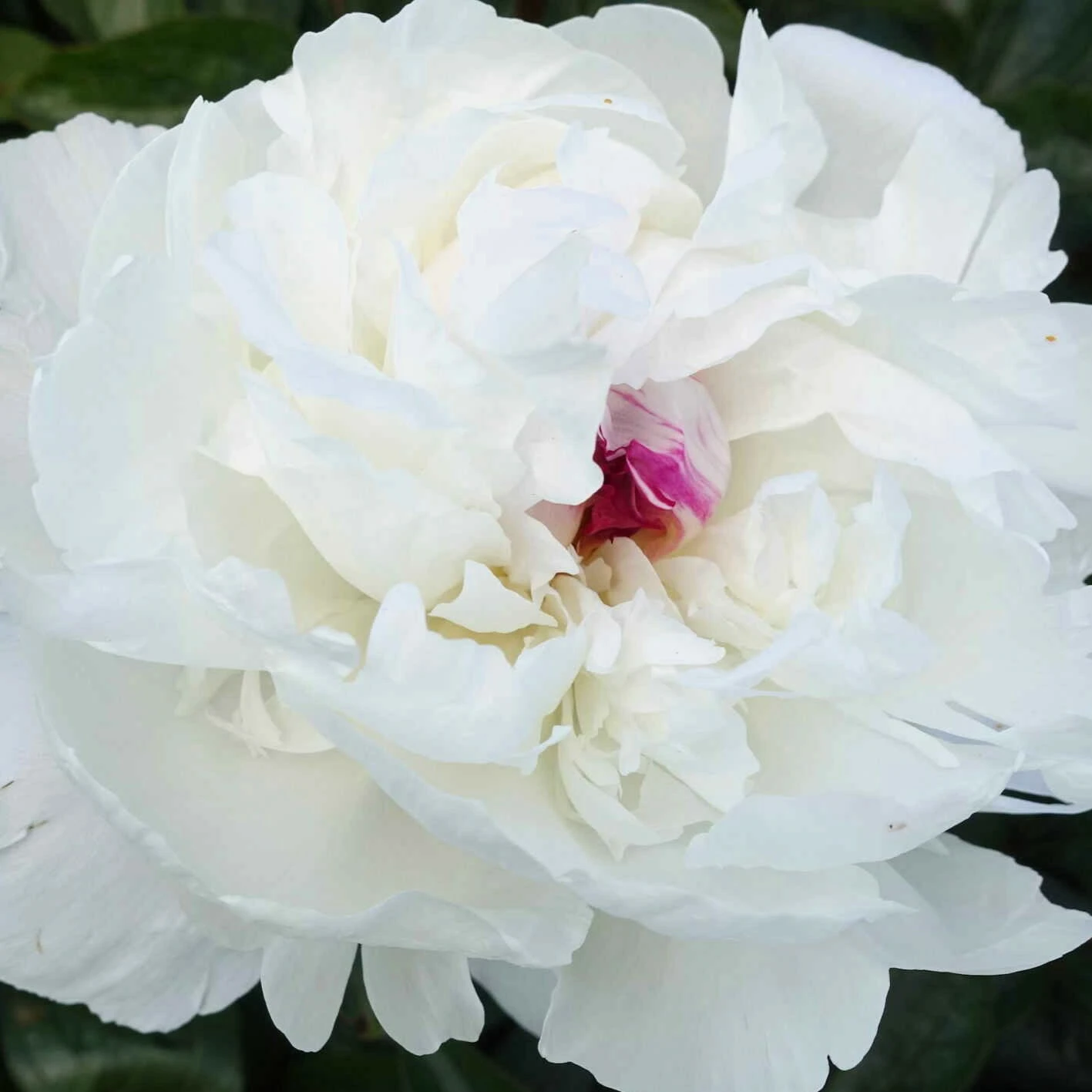 Paeonia 'Festiva Maxima' is a beloved classic herbaceous peony producing large, fully double white blooms often flecked with crimson at the centre. Highly fragrant and flowering in late spring to early summer, this long-lived variety holds the prestigious RHS Award of Garden Merit (AGM) for its outstanding performance and reliability in UK gardens.
