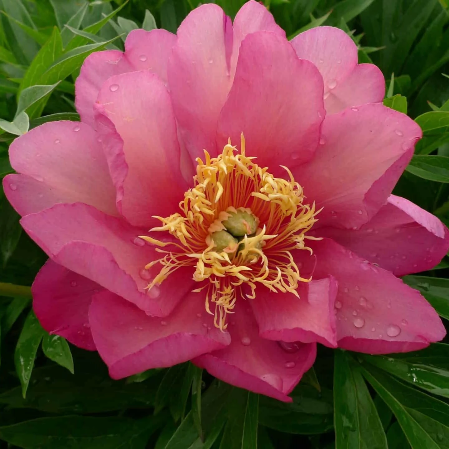 As an Itoh peony, it blends the best traits of herbaceous and tree peonies: large showy flowers, strong woody stems that require no staking, and a compact, tidy habit that dies back cleanly in winter. The blooms rise well above the foliage, creating a bold display in late spring to early summer. Fully hardy, reliable and excellent for cutting, it thrives in fertile, well-drained soil and is suitable for borders or large containers.