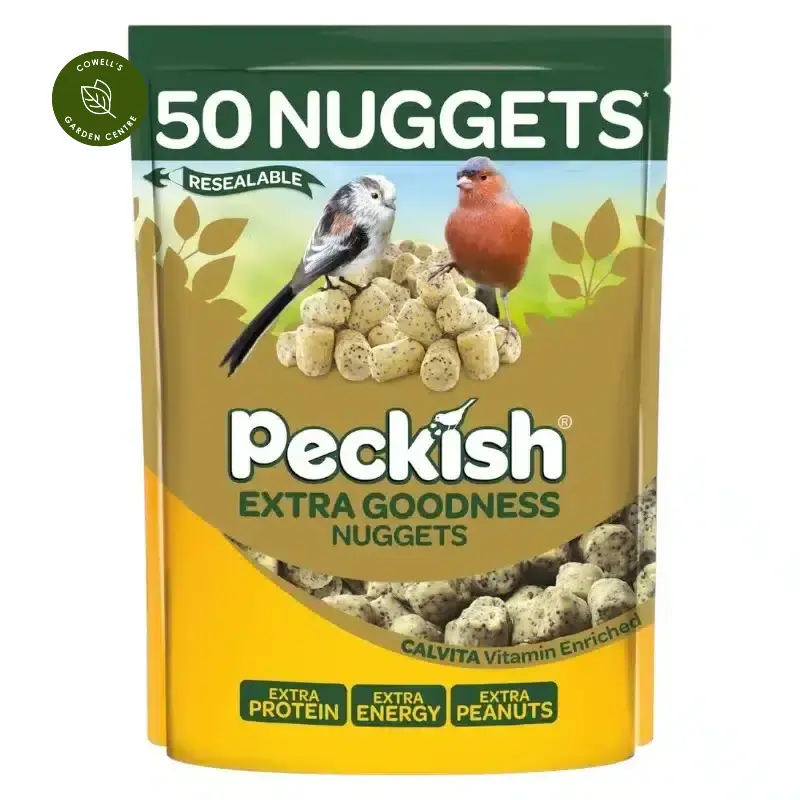 Peckish Extra Goodness Nuggets are packed with suet, peanuts and mealworms full of energy and protein. All ingredients are selected and prepared to be small, soft and easy to eat for small and young birds. These nuggets have a delicious peanut aroma, sure to attract the birds to your garden.