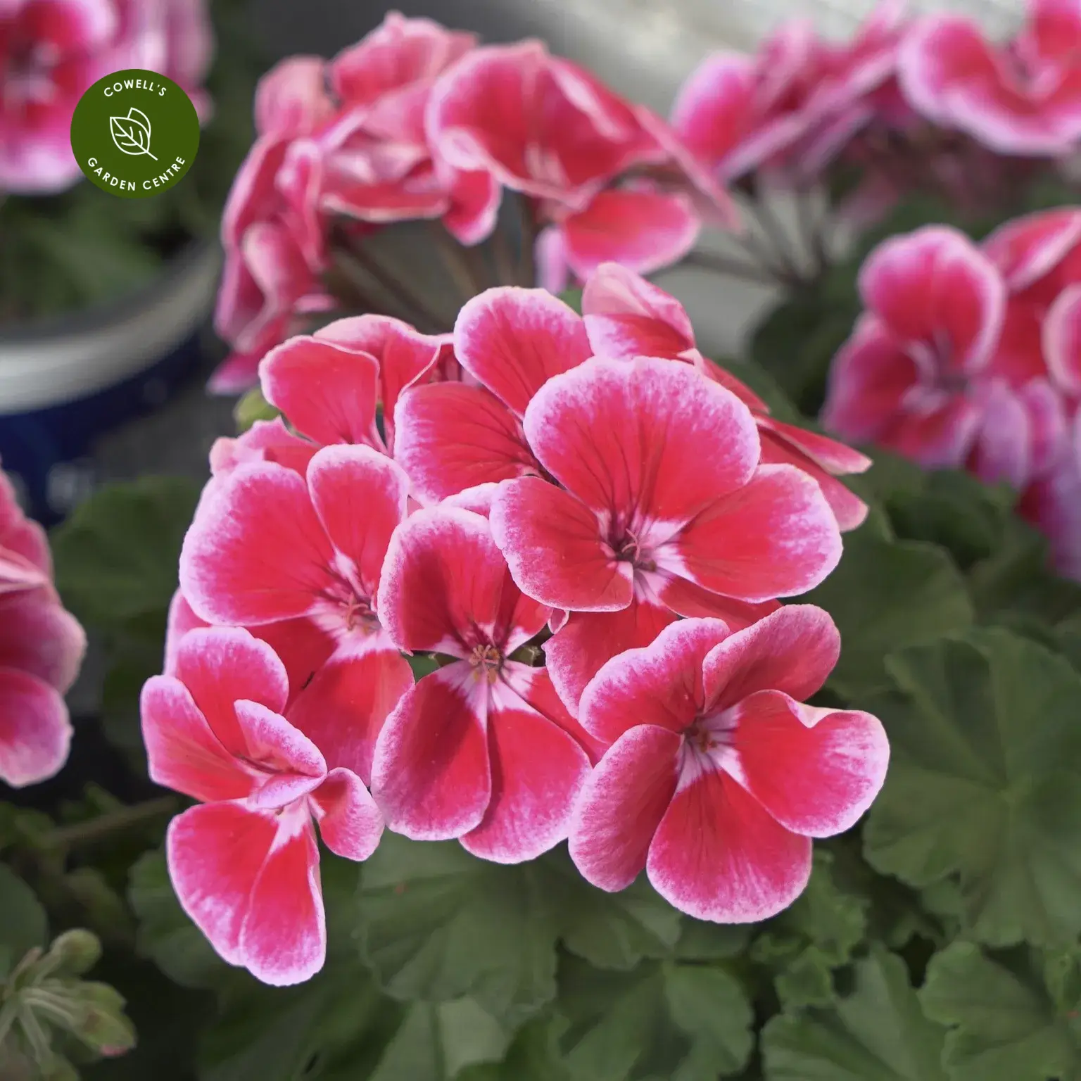 Pelargonium 'Ylenia' is a vibrant and free-flowering geranium, producing clusters of richly coloured blooms throughout the summer months. Its compact, bushy habit makes it ideal for adding bold colour to patios, window boxes, and garden containers.