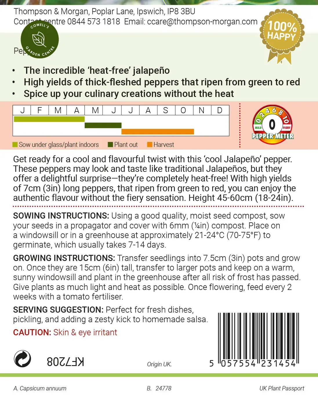 Discover a refreshingly mild take on a classic with the Cool Jalapeño pepper ‘Nadapeno’. These peppers look and taste just like traditional jalapeños, but with one welcome difference – there’s absolutely no heat. Producing generous crops of smooth, 7cm-long fruits, ‘Nadapeno’ delivers all the authentic flavour without the fiery kick.