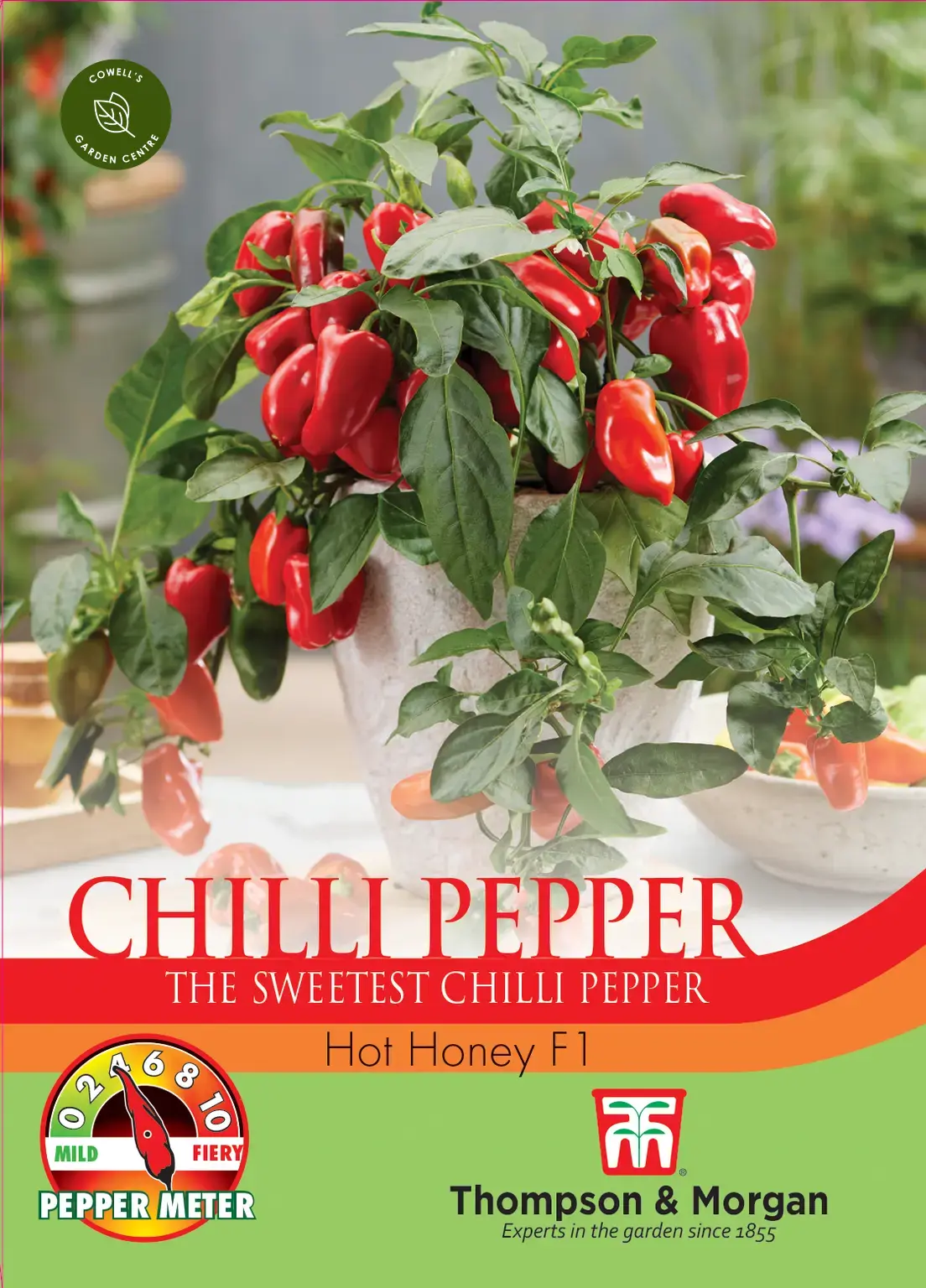 The sweetest chilli you can grow! Chilli Pepper ‘Hot Honey’ blends the fruity sugars of a sweet pepper with gentle jalapeño heat, creating a truly unique, mild chilli. Compact and easy to grow in pots, containers, or hanging baskets, ‘Hot Honey’ thrives on sunny windowsills, patios, or in greenhouses.