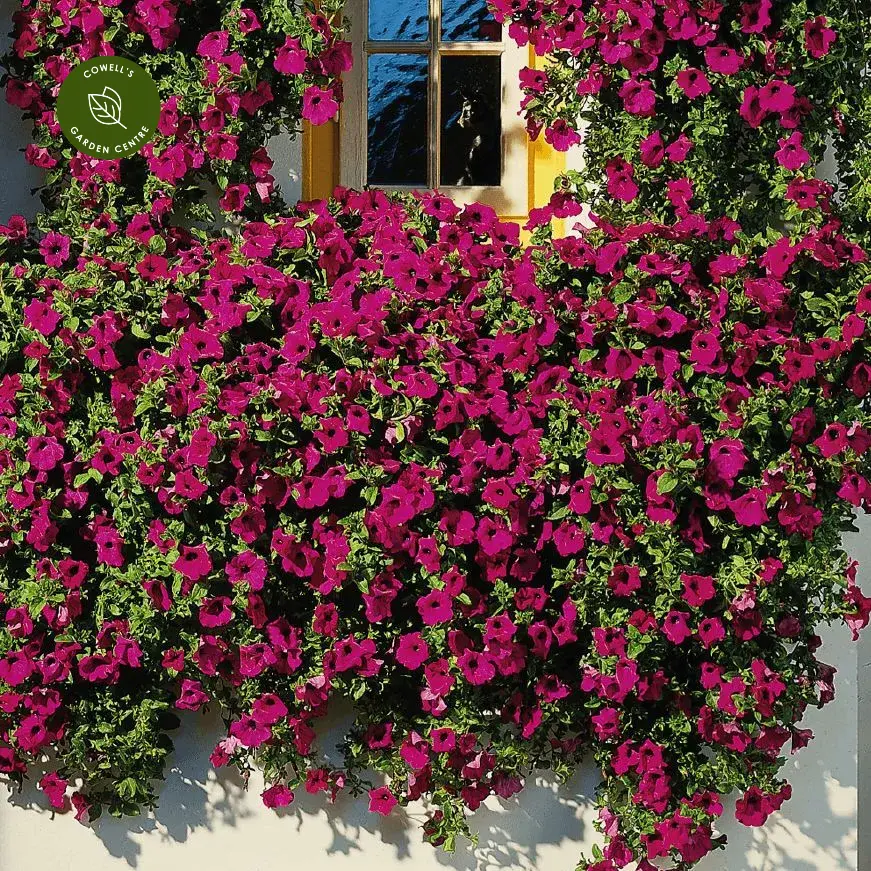 Petunia Surfinia Series is a vigorous, trailing collection of petunias renowned for its exceptional flowering performance and weather resilience. Producing masses of vibrant blooms from late spring through to the first frosts, Surfinia varieties are perfect for creating bold, cascading displays.