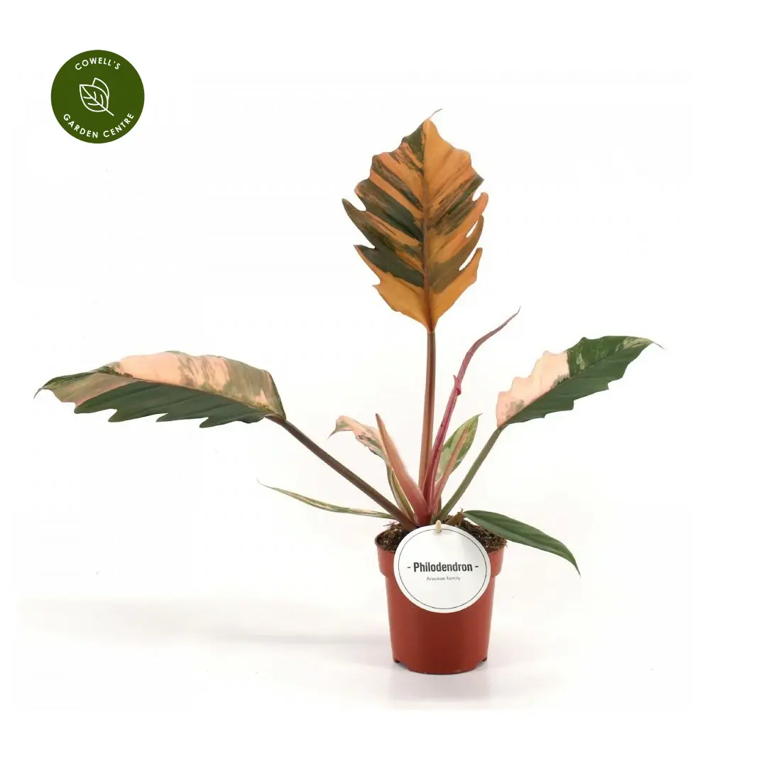 Philodendron ‘Caramel Marble’ is an exceptionally rare and highly sought-after tropical Philodendron, admired for its dramatic, deeply lobed foliage and extraordinary variegation. Each leaf displays a unique blend of caramel, cream, rich green, and occasional blush tones of pink or peach, giving the plant a molten, marbled appearance that evolves as it matures.