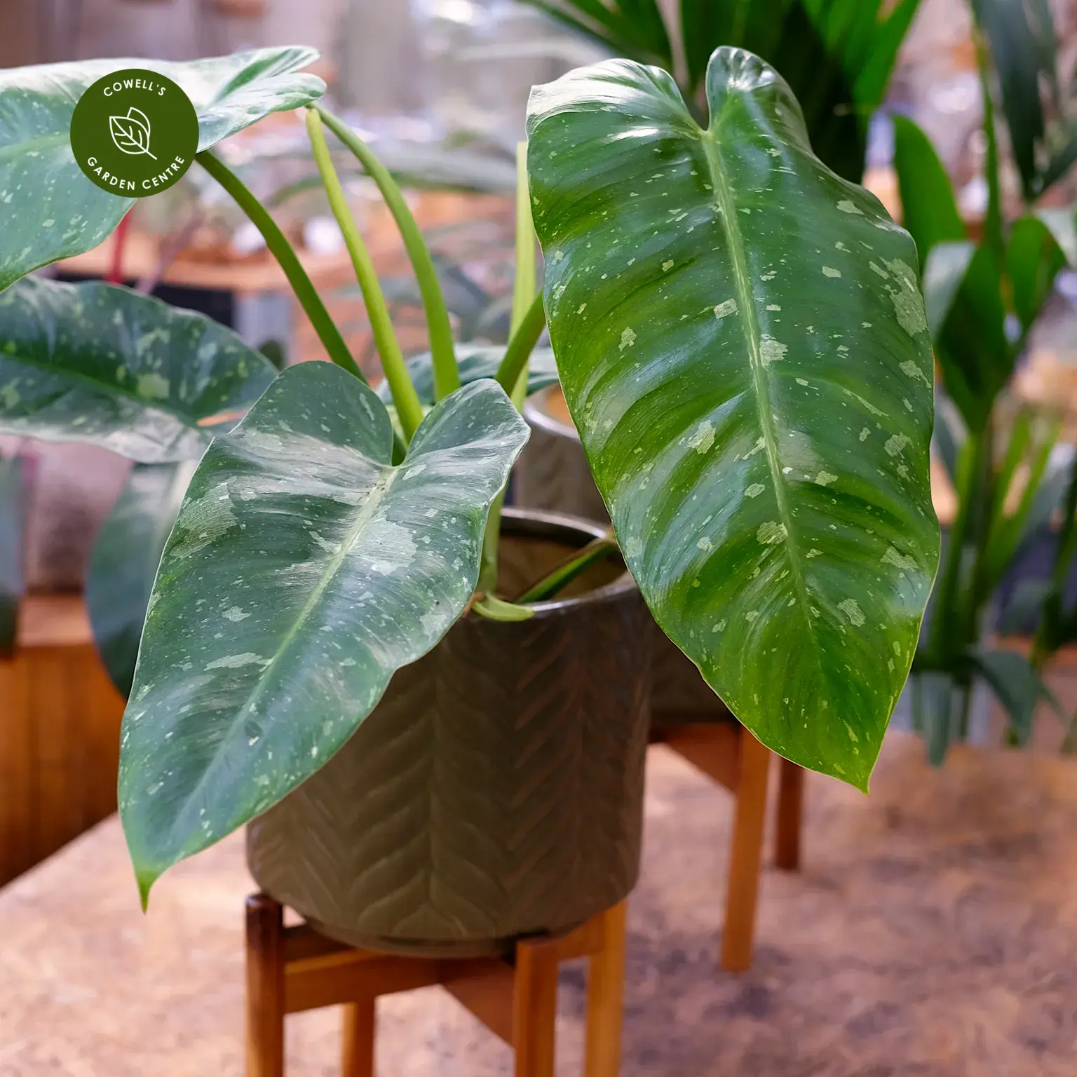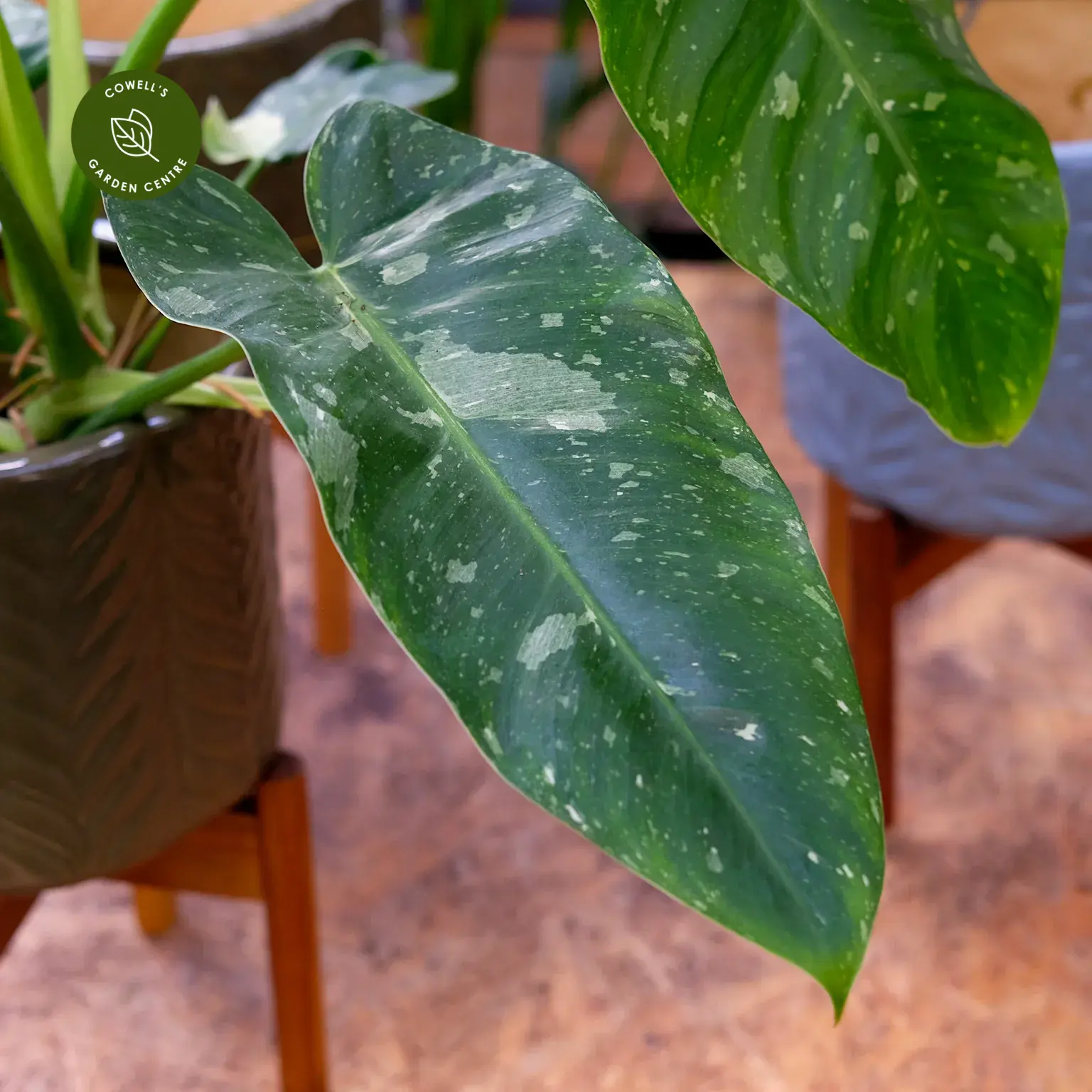 Philodendron 'Jose Buono' is a spectacular, highly sought-after variegated philodendron, prized for its large, elongated leaves splashed with bold patches of creamy white and pale green. The dramatic marbling becomes more striking as the plant matures, giving each leaf a unique, painterly appearance.