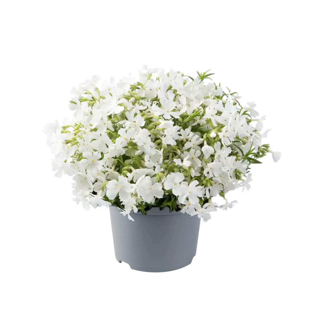 Phlox subulata 'Fabulous White' is a low-growing, mat-forming perennial that creates a dazzling carpet of pure white flowers from April to June. The masses of star-shaped blooms cover the foliage completely in spring, adding a bright and refreshing display to rockeries, slopes, or the front of sunny borders. Its fine, evergreen foliage forms a dense cushion, providing year-round ground cover.