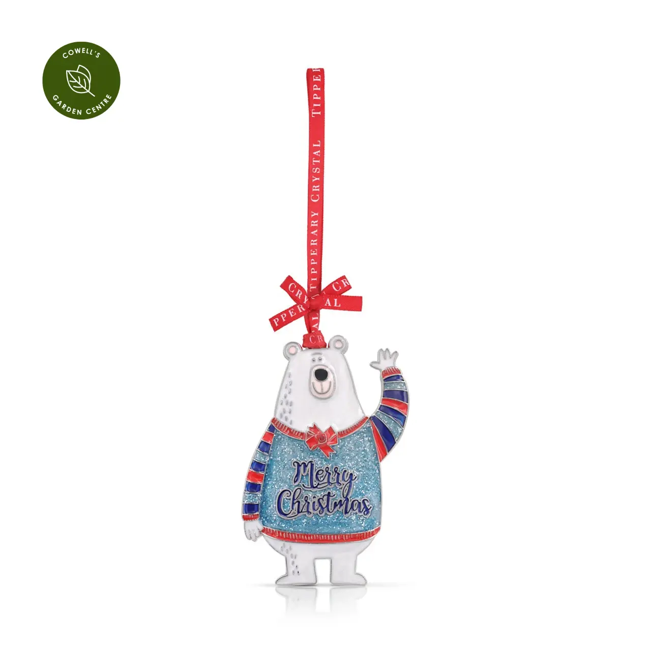 Bring festive sparkle to your tree with the Polar Bear Decoration. Featuring a polar bear with sparkling festive jumper, It’s presented in a star-shaped gift box and finished with a branded hanging ribbon.