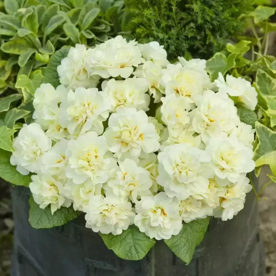 Primula Belarina® 'Cream' is a standout spring-flowering perennial, producing masses of fully double, fragrant cream flowers. Blooming from February to May, it is regarded as one of the most floriferous in the Belarina® series, providing a long-lasting and elegant display at the start of the season. Its compact, low-growing habit makes it perfect for the front of borders, pots, and seasonal bedding schemes.