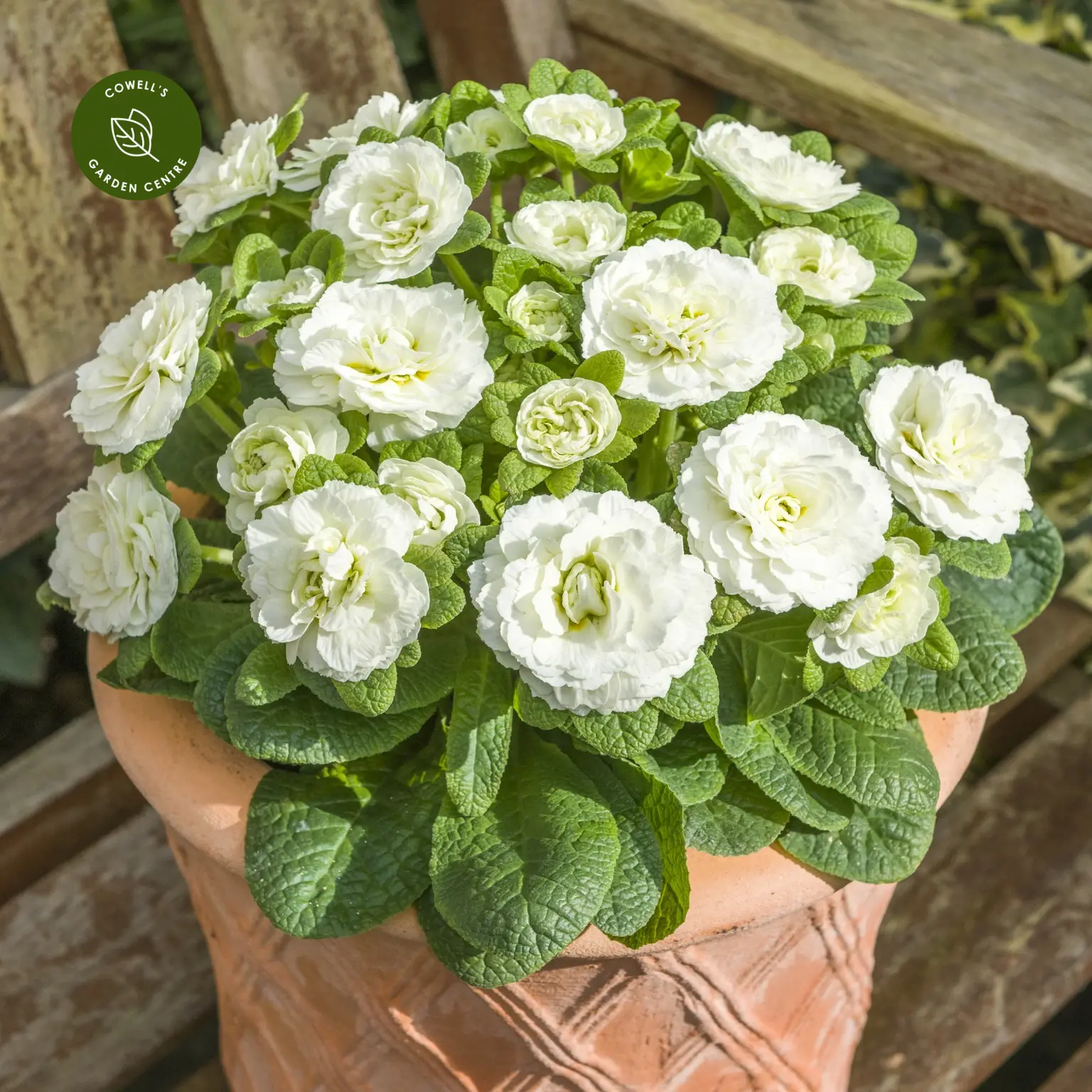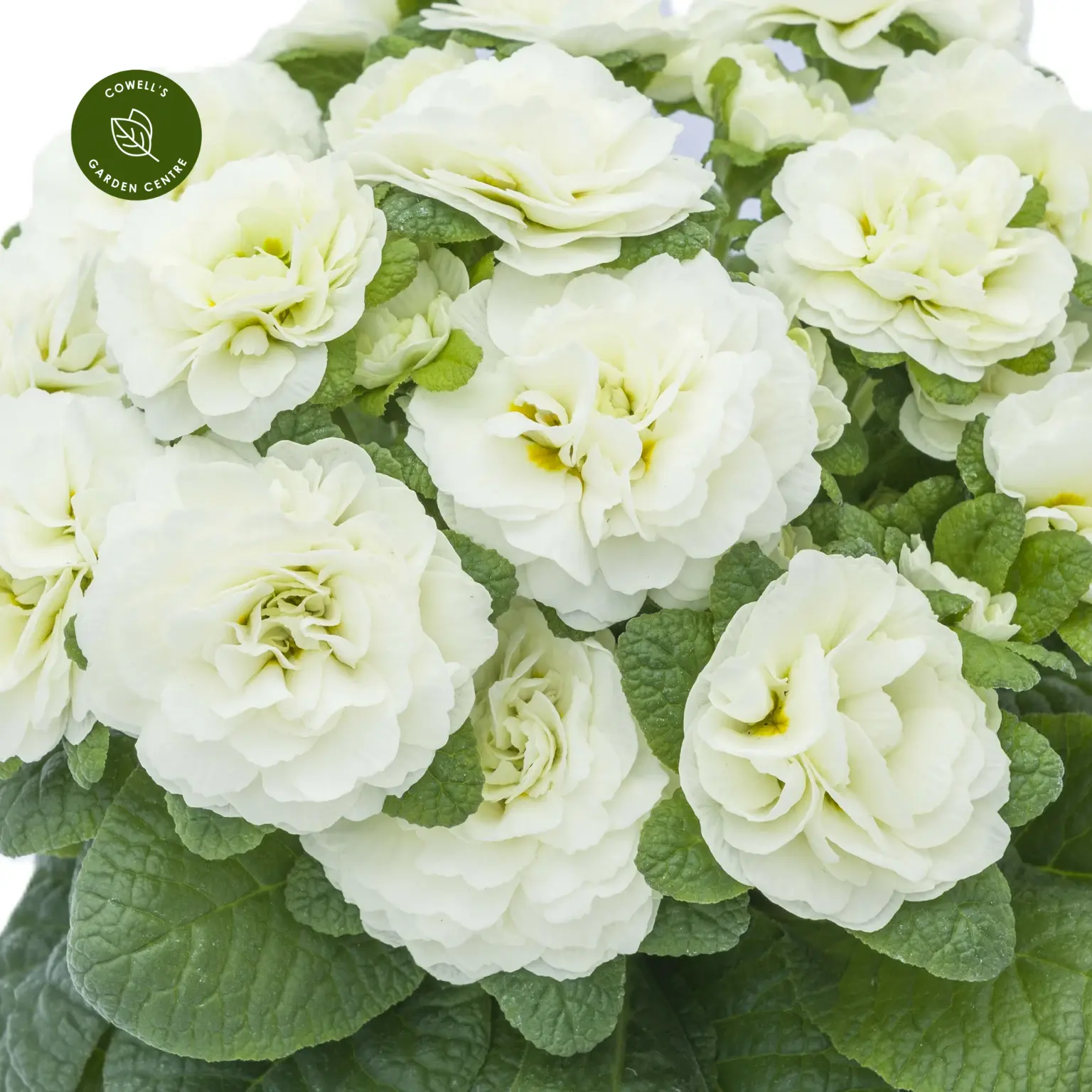 Primula Belarina® 'Spearmint' is a charming spring perennial producing masses of double white flowers with a distinctive lime-green eye. Flowering from February to May, the blooms are lightly fragrant and provide a long-lasting display during the early part of the season. Its neat, compact growth makes it perfect for front of borders, pots, or seasonal bedding schemes.