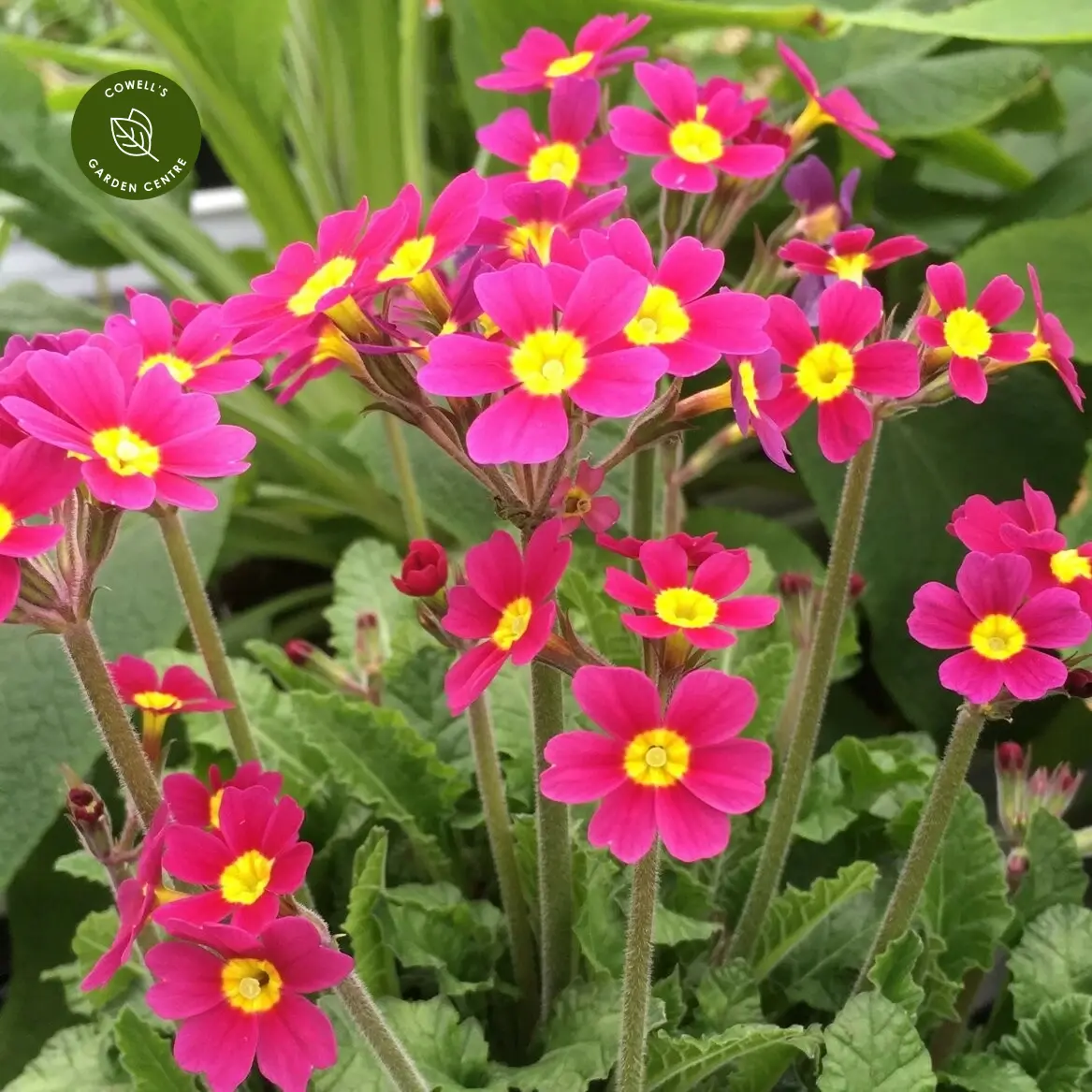 Primula 'Oak Leaf Magenta' is a charming spring-flowering perennial producing vibrant magenta blooms above distinctive oak-shaped foliage. The richly coloured flowers bring bold seasonal interest to borders, containers, and woodland-style planting, while the unique leaf shape adds texture even when not in flower.