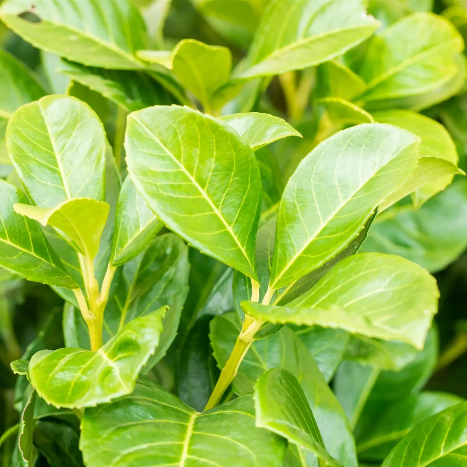 Prunus 'Etna'® is a compact and dense evergreen shrub valued for its glossy, dark green foliage that emerges with an attractive bronze tint. In spring, it produces upright spikes of fragrant white flowers, 8-10cm long, which stand out beautifully against the rich foliage and attract pollinators such as bees. Its strong, bushy growth makes it perfect for adding year-round structure, colour, and privacy to any garden.