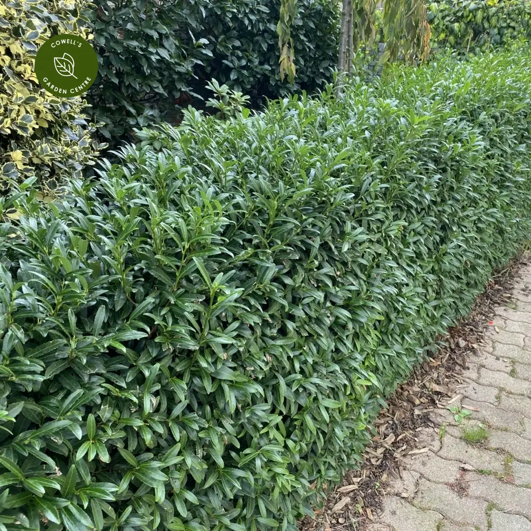 Prunus laurocerasus 'Sofia' is a compact, elegant form of cherry laurel, distinguished by its narrow, refined foliage and naturally neat habit. Its glossy evergreen leaves provide year-round structure, making it ideal for low hedging, small screening projects or creating formal shapes such as cones or spheres. Versatile and stylish, it suits both contemporary and traditional garden settings.