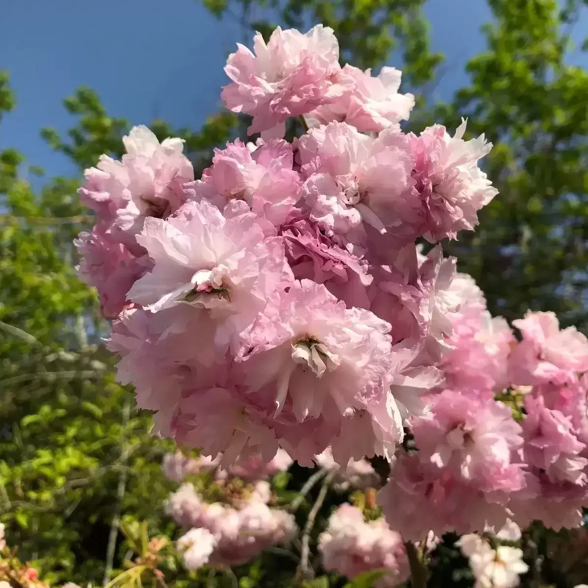 - Double pink blossom in mid to late spring