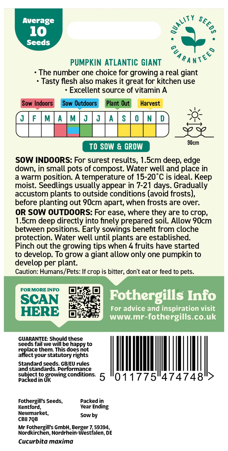 The world’s largest pumpkin variety. Raise fruits on straw to protect against rotting if ground is wet. Occasional liquid feeds are beneficial.