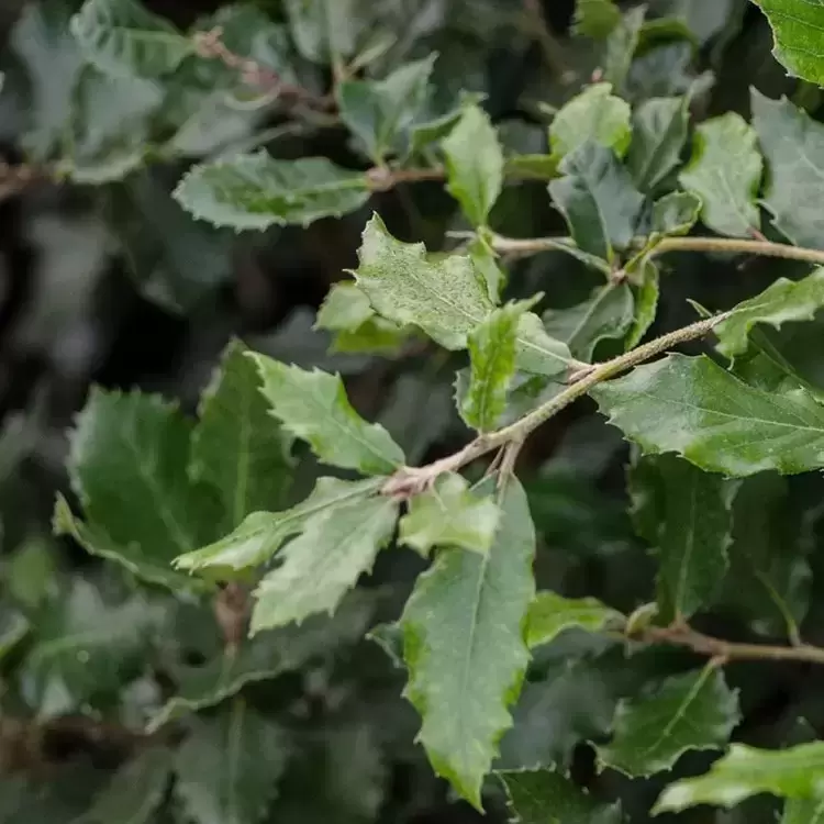 In spring, clusters of catkins appear, followed by acorns that provide food for birds and wildlife. This long-lived oak is tolerant of wind, salt spray, and drought once established, making it especially suited for coastal planting. It is widely planted as a specimen tree, in avenues, or clipped into large evergreen screens, and holds the RHS Award of Garden Merit for its exceptional performance.