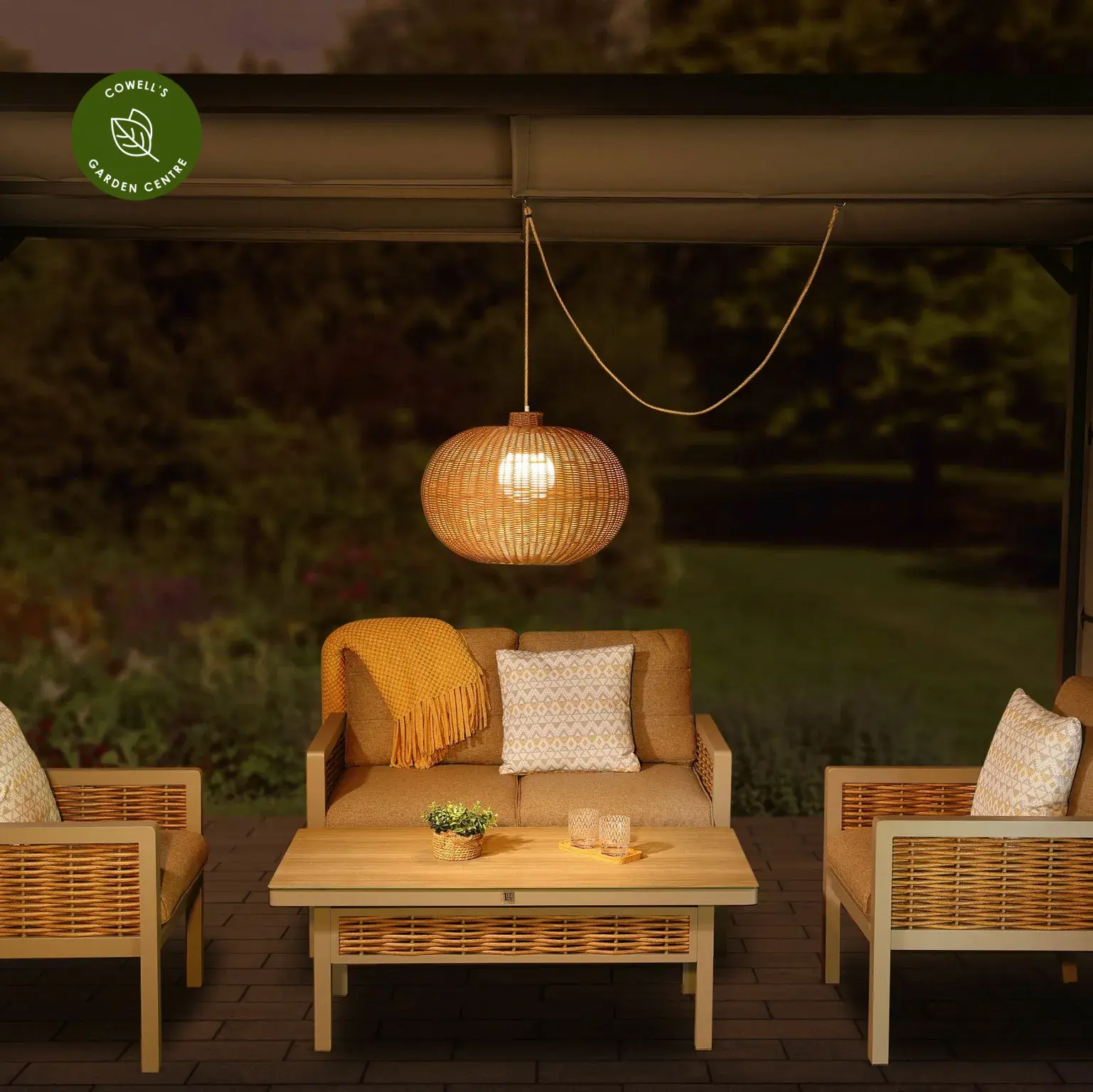 Bring warm, relaxed lighting to patios and outdoor seating areas with the Ravello Sesame Rattan Pendant Light. Crafted with a durable UV-resistant rattan weave, this stylish pendant creates a soft ambient glow while adding natural texture to garden spaces.