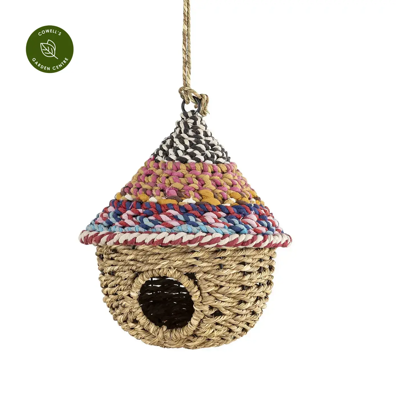 Munja and Sari Bird Nesters are handcrafted in India using reclaimed sari fabric from factory offcuts that have been carefully collected, washed, and artfully woven together with sustainably sourced munja grass. The result is a truly unique, eco-friendly home for your garden birds.