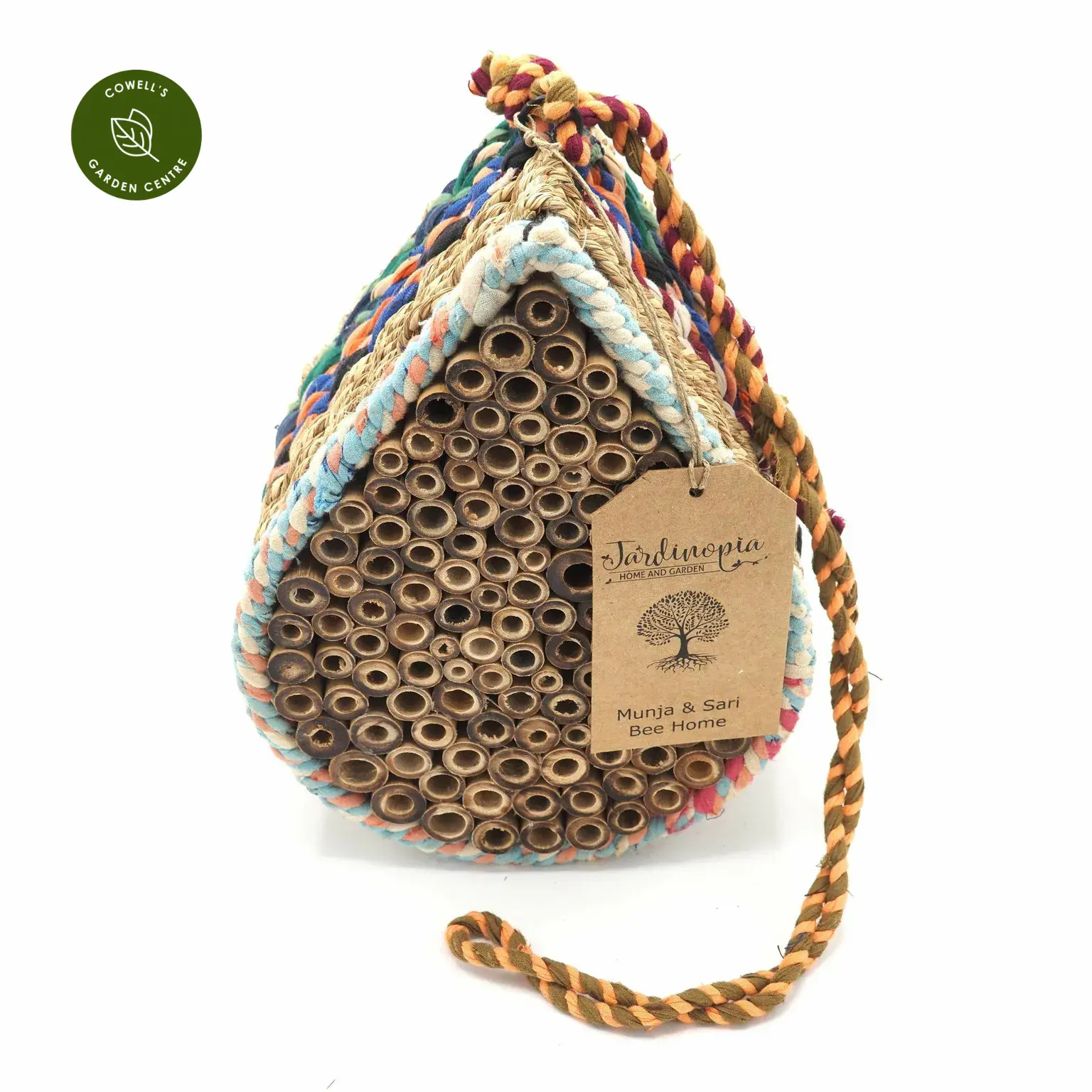 Provide a safe, natural habitat for garden bees with this Fairtrade bee home, handcrafted in India using reclaimed sari fabric and sustainably sourced munja grass. Each piece is unique, combining colourful recycled materials with a durable design that’s suitable for outdoor use all year round.