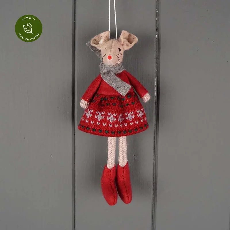 Cute hanging mouse decoration with soft clothing and and hanging loop, to add festive charm around the home.