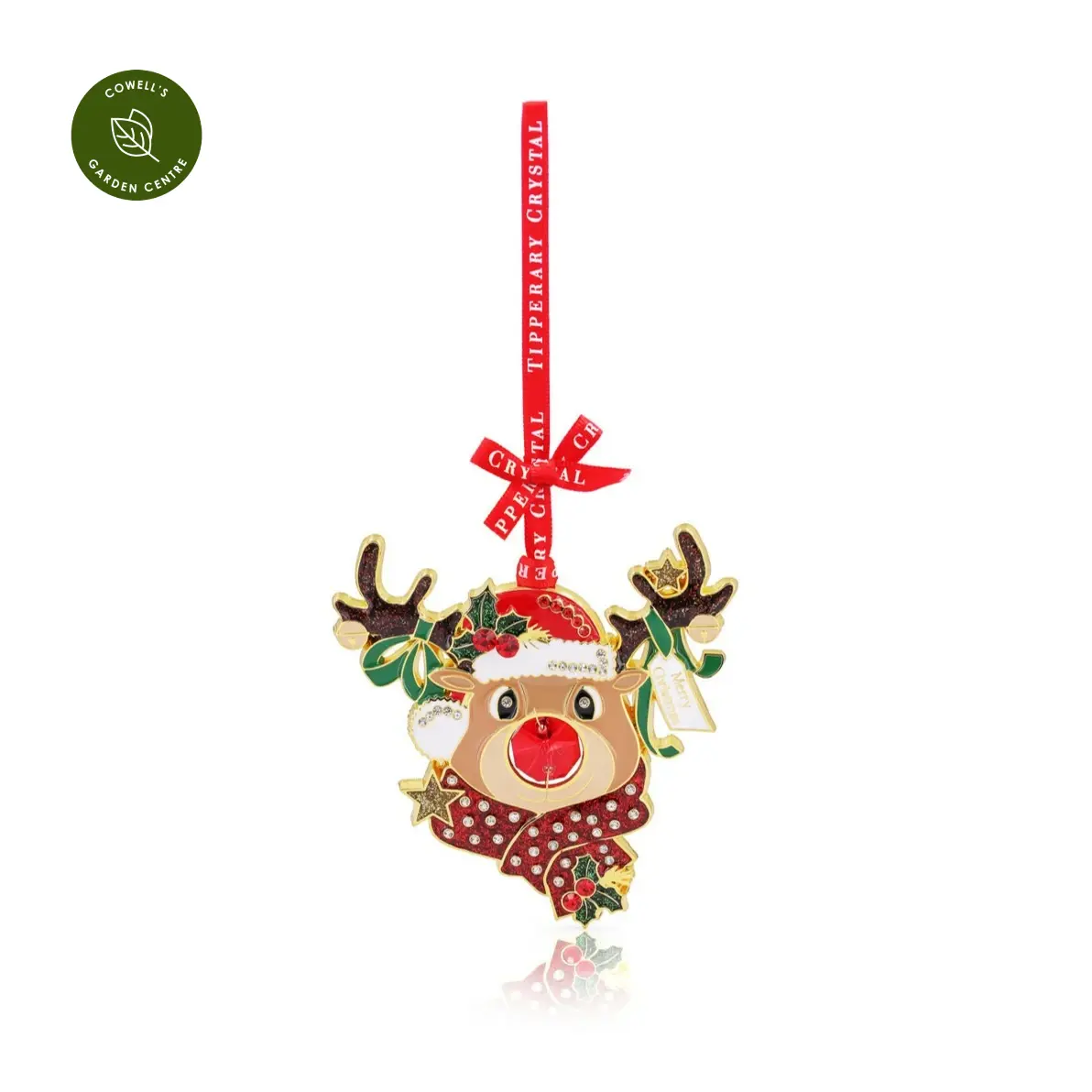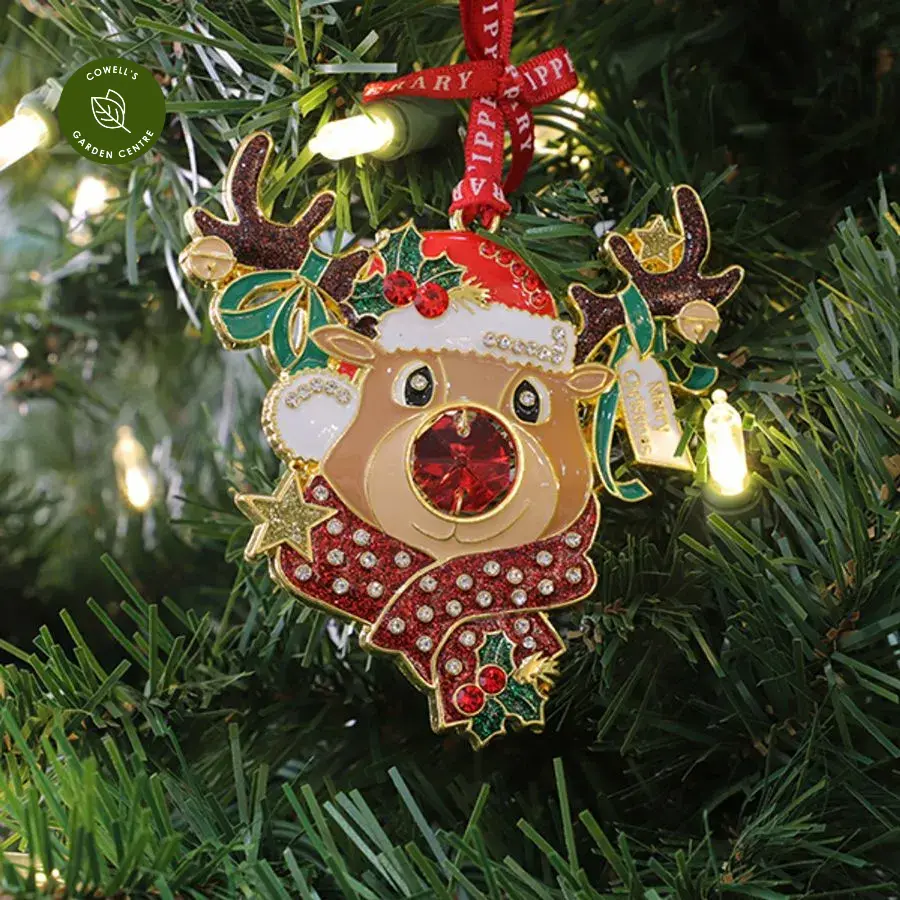 Bring festive sparkle to your tree with the Gem Christmas Reindeer Decoration. Featuring a sparkling reindeer head with gem nose, it’s presented in a star-shaped gift box and finished with a branded hanging ribbon.