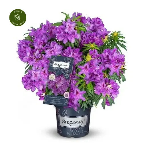 Rhododendron 'Grazeasy Purple' is a hardy hybrid selected for its adaptability and reliable garden performance. Unlike many rhododendrons, it tolerates a wider range of soil types, making it an excellent choice for less-than-ideal conditions while still delivering a superb floral display.