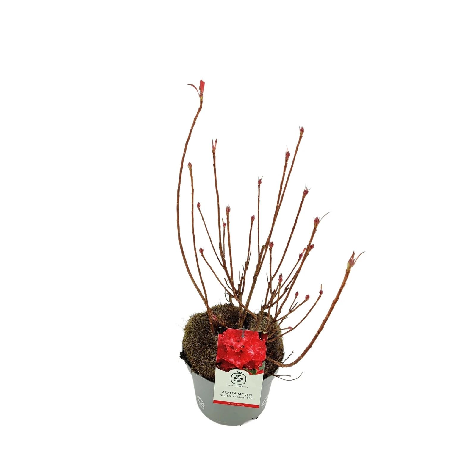 Azalea mollis 'Koster’s Brilliant Red', also listed as Rhododendron molle hybrid, is a striking deciduous azalea grown for its vivid floral display. In late spring, it produces large trusses of trumpet-shaped, brilliant scarlet-red flowers that stand out dramatically against the fresh green foliage. These vibrant blooms are lightly fragrant and attract pollinators, adding both colour and life to the garden.