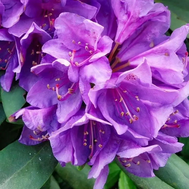Rhododendron yakushimanum 'Bohlken's Lupinenberg Laguna' is a compact and beautifully formed variety producing vivid purple buds that open to deep mauve flowers with delicate green-yellow speckling. Flowering in late May, it creates a rich and eye-catching display above glossy evergreen foliage.