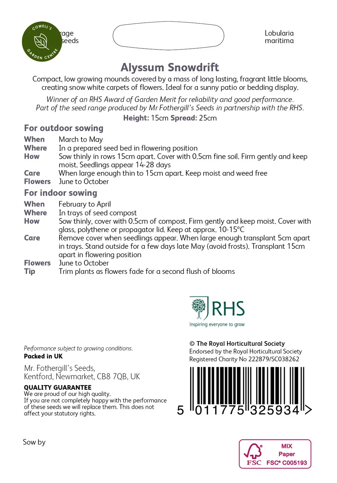 Write a review about "RHS Alyssum Snowdrift Seeds"