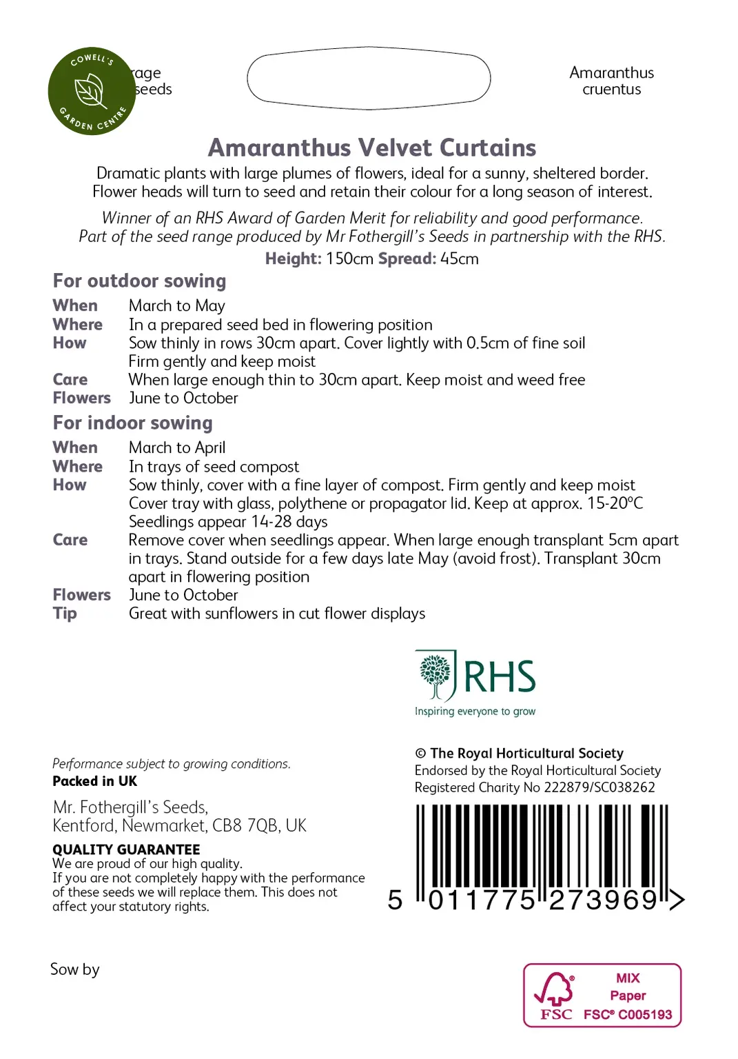 Write a review about "RHS Amaranthus Velvet Curtains Seeds"