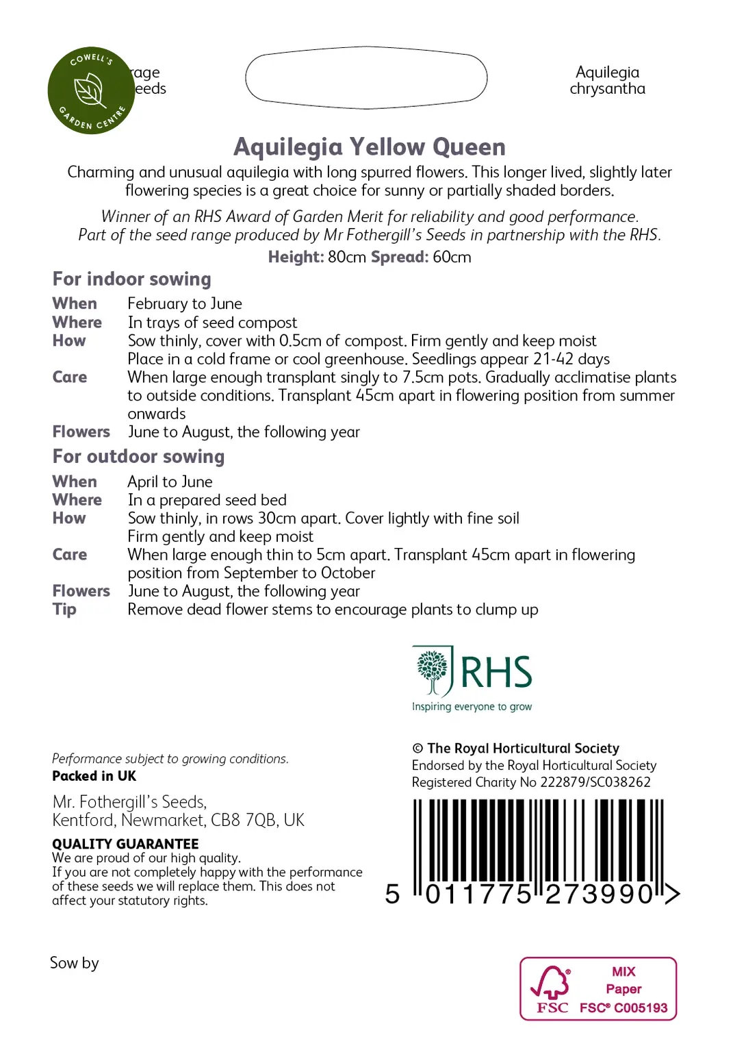 Write a review about "RHS Aquilegia Yellow Queen Seeds"